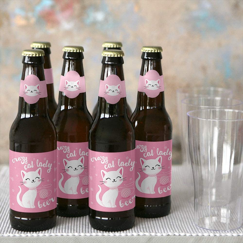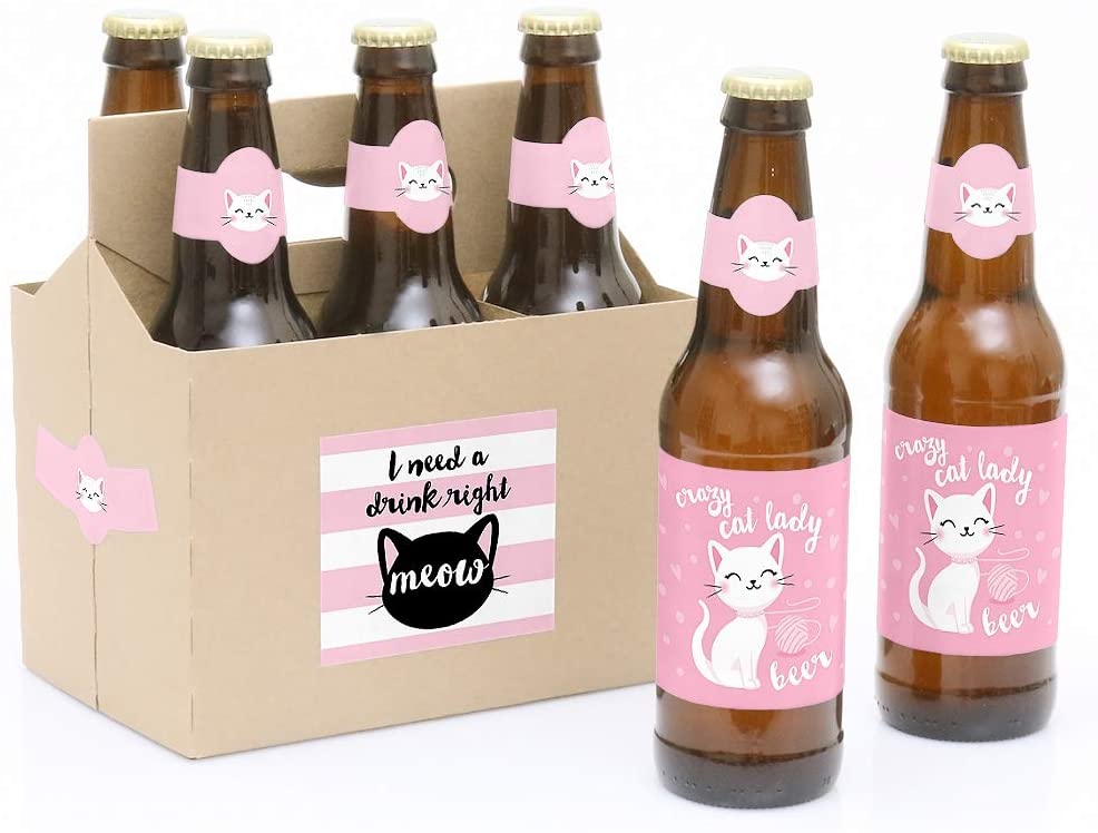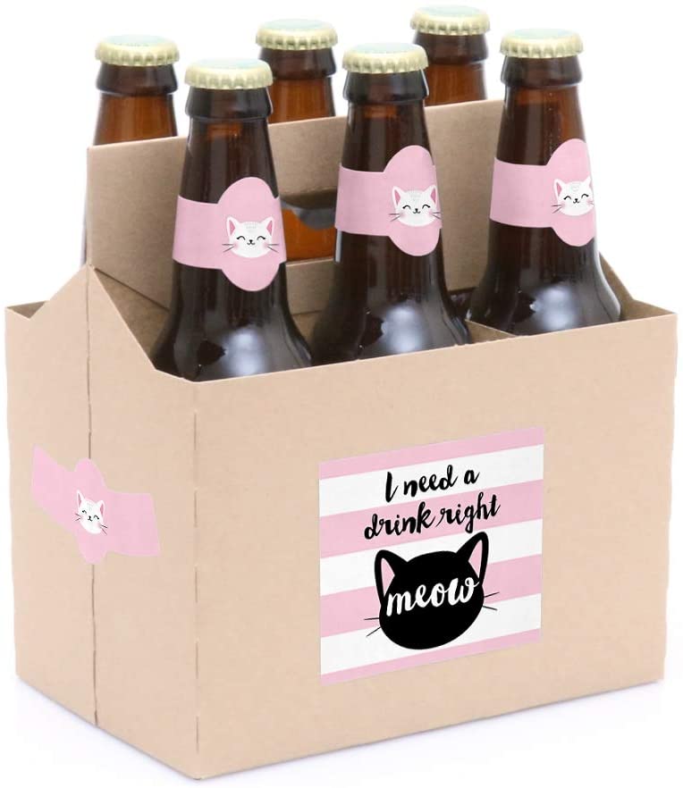 Purr-fect Kitty Cat - Kitten Meow Birthday Party Decorations for Women and Men - 6 Beer Bottle Label Stickers and 1 Carrier is backordered and will ship as soon as it is back in stock.