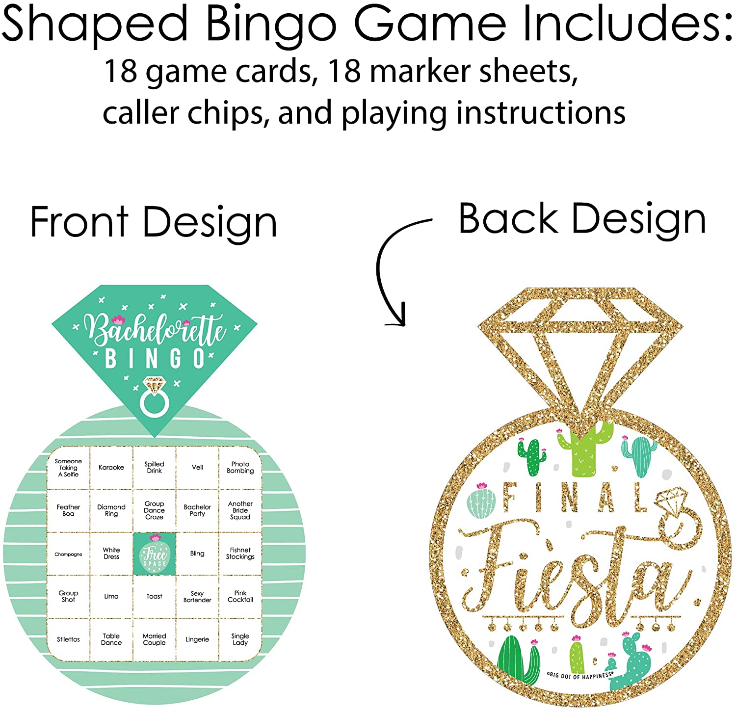 Final Fiesta - Bar Bingo Cards and Markers - Last Fiesta Bachelorette Party Shaped Bingo Game - Set of 18 is backordered and will ship as soon as it is back in stock.