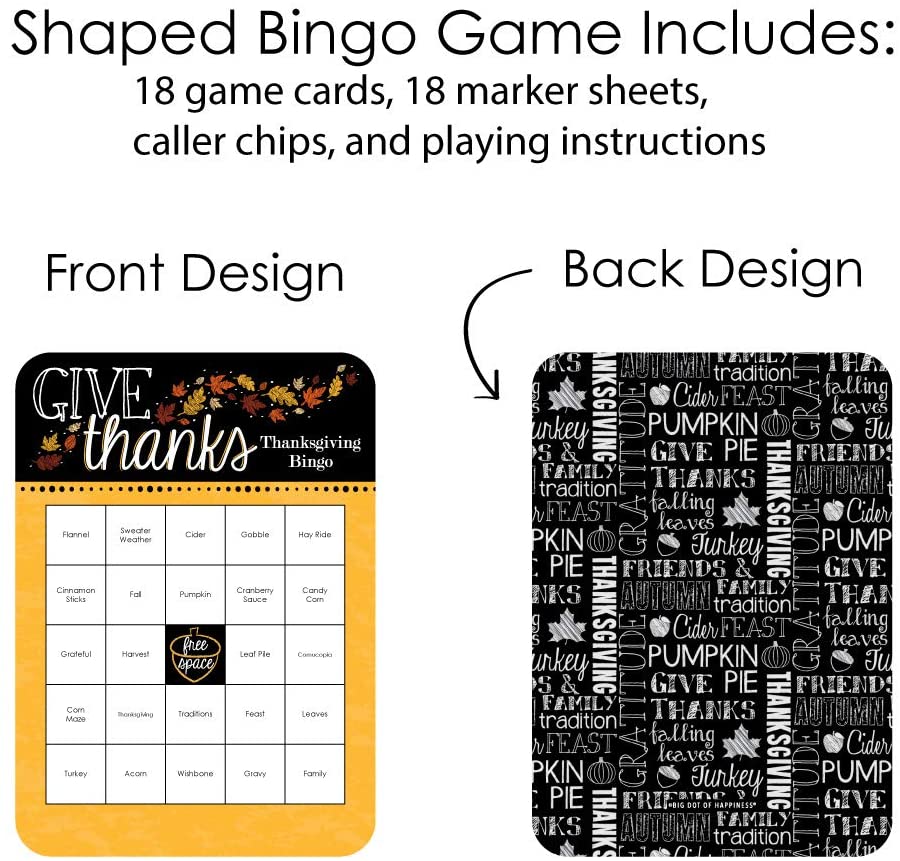 Give Thanks - Bingo Cards and Markers - Thanksgiving Party Bingo Game - Set of 18 is backordered and will ship as soon as it is back in stock.