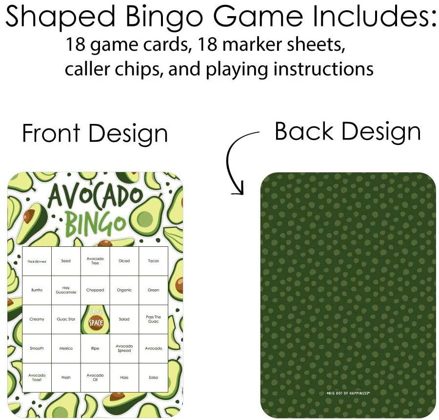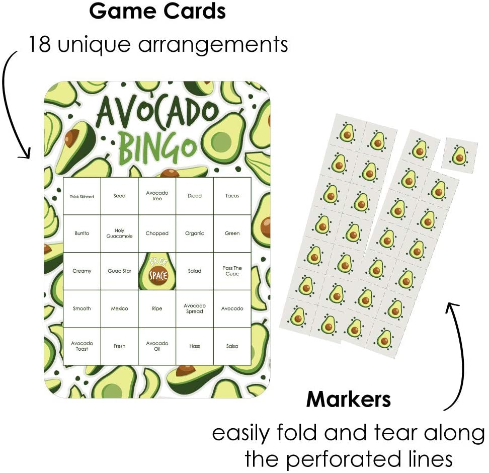 Hello Avocado - Bingo Cards and Markers - Fiesta Party Bingo Game - Set of 18 is backordered and will ship as soon as it is back in stock.
