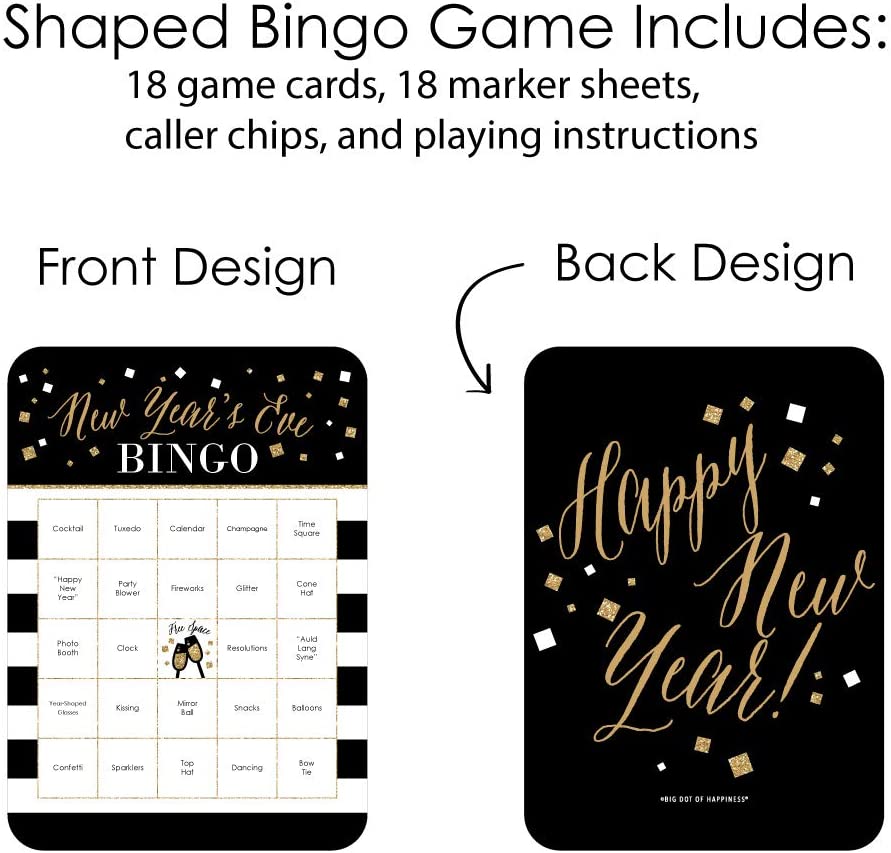 New Year’s Eve - Gold - Bar Bingo Cards and Markers - New Years Eve Party Bingo Game - Set of 18 is backordered and will ship as soon as it is back in stock.