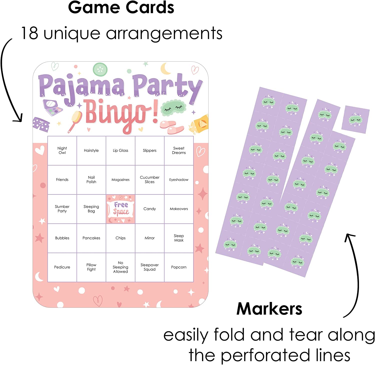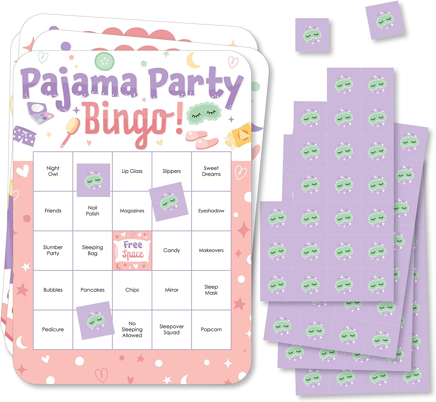 Pajama Slumber Party - Bingo Cards and Markers - Girls Sleepover Birthday Party Bingo Game - Set of 18 is backordered and will ship as soon as it is back in stock.