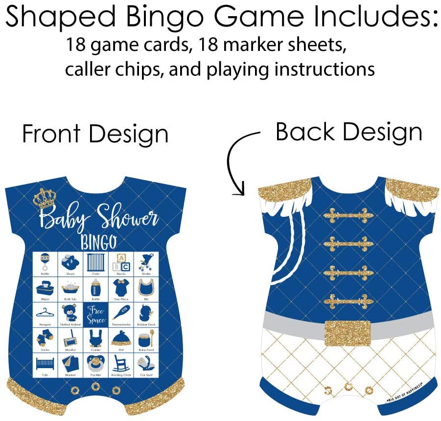 Royal Prince Charming - Picture Bingo Cards and Markers - Baby Shower Shaped Bingo Game - Set of 18 is backordered and will ship as soon as it is back in stock.