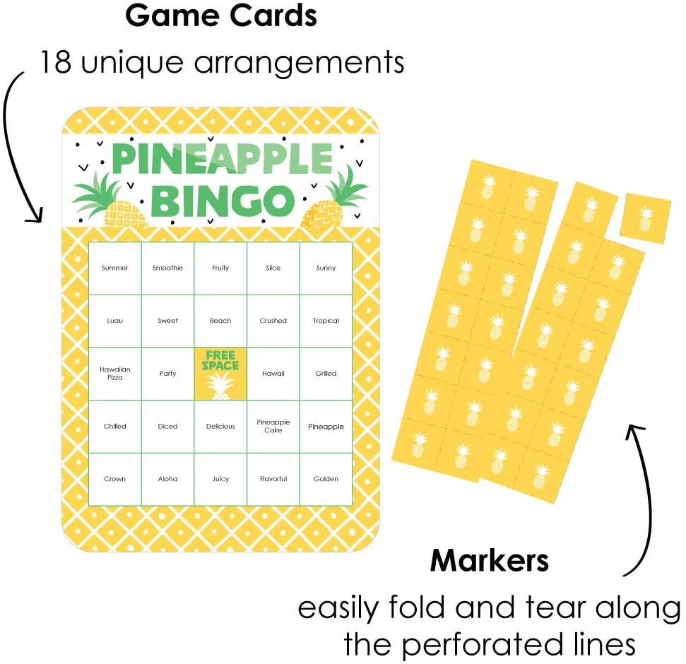 Tropical Pineapple - Bingo Cards and Markers - Summer Party Bingo Game - Set of 18 is backordered and will ship as soon as it is back in stock.
