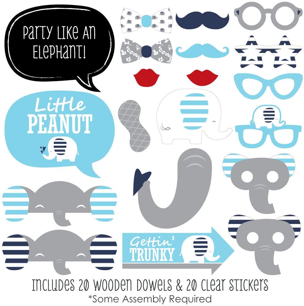 Blue Elephant - Boy Baby Shower or Birthday Party Photo Booth Props Kit - 20 Count is backordered and will ship as soon as it is back in stock.