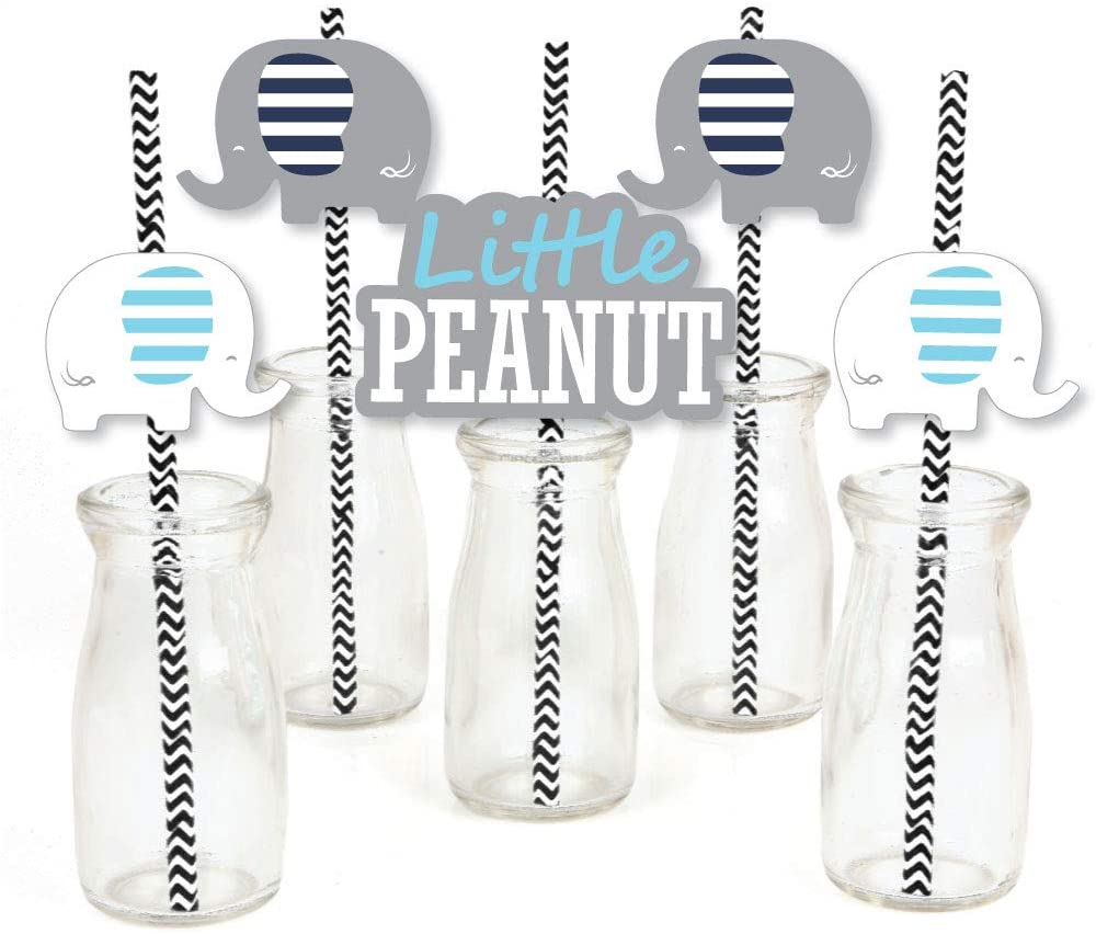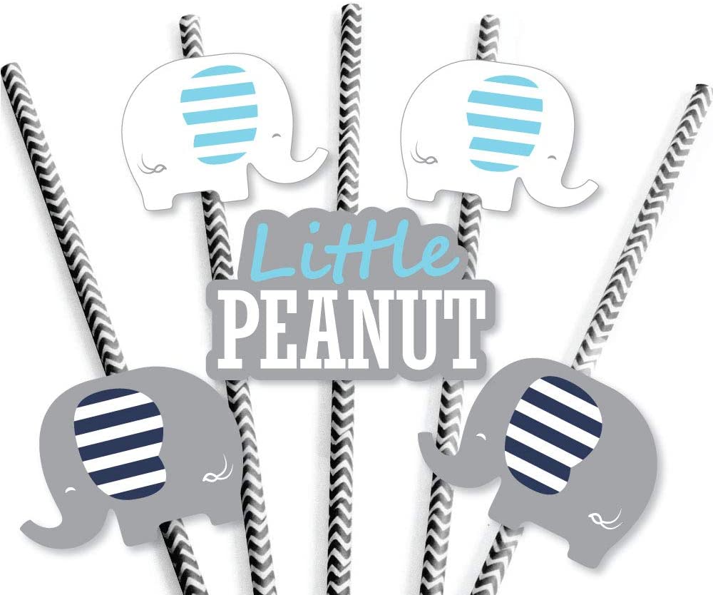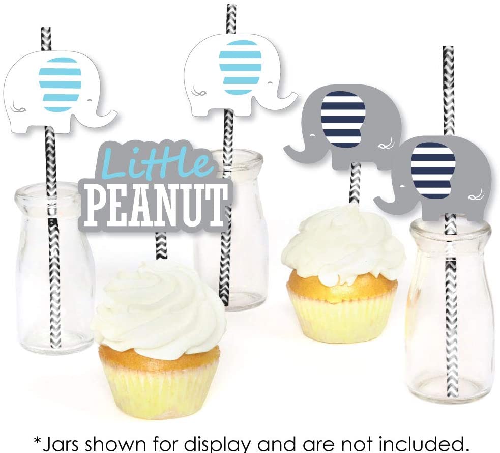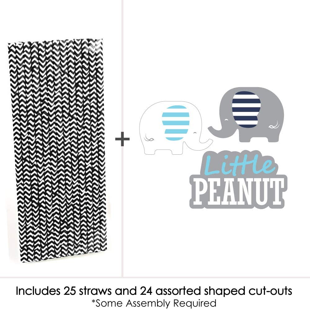 Blue Elephant - Paper Straw Decor - Boy Baby Shower or Birthday Party Striped Decorative Straws - Set of 24 is backordered and will ship as soon as it is back in stock.