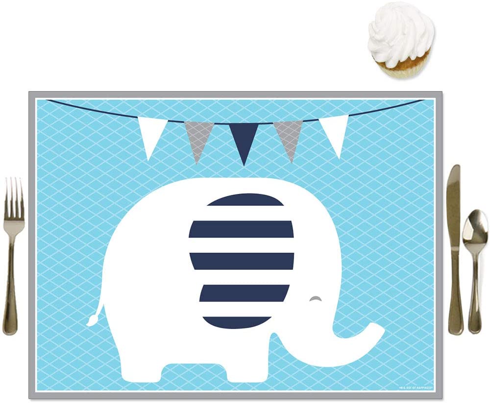 Blue Elephant - Party Table Decorations - Boy Baby Shower or Birthday Party Placemats - Set of 16 is backordered and will ship as soon as it is back in stock.