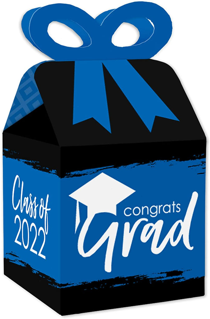 Blue Grad - Best is Yet to Come - Square Favor Gift Boxes - 2022 Royal Blue Graduation Party Bow Boxes - Set of 12