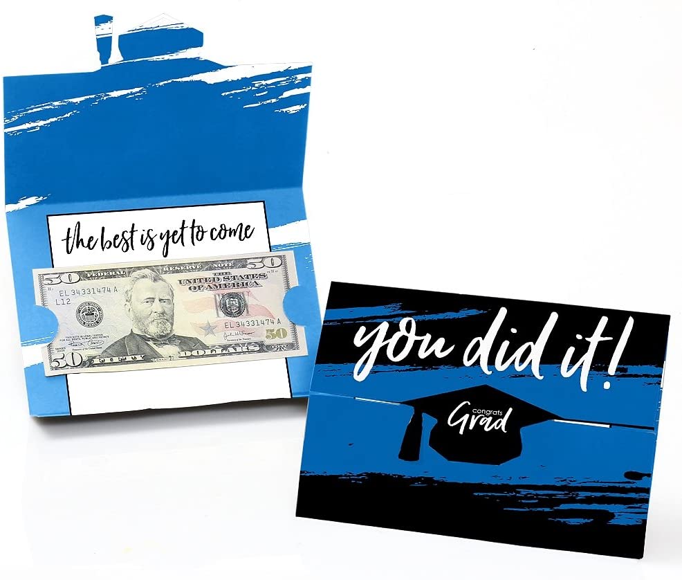 Blue Grad - Best is Yet to Come - Royal Blue Graduation Party Money and Gift Card Holders - Set of 8