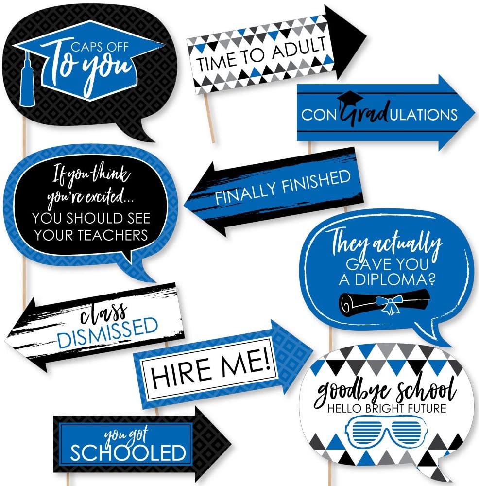 Funny Blue Grad - Best is Yet to Come - Royal Blue Graduation Party Photo Booth Props Kit - 10 Piece