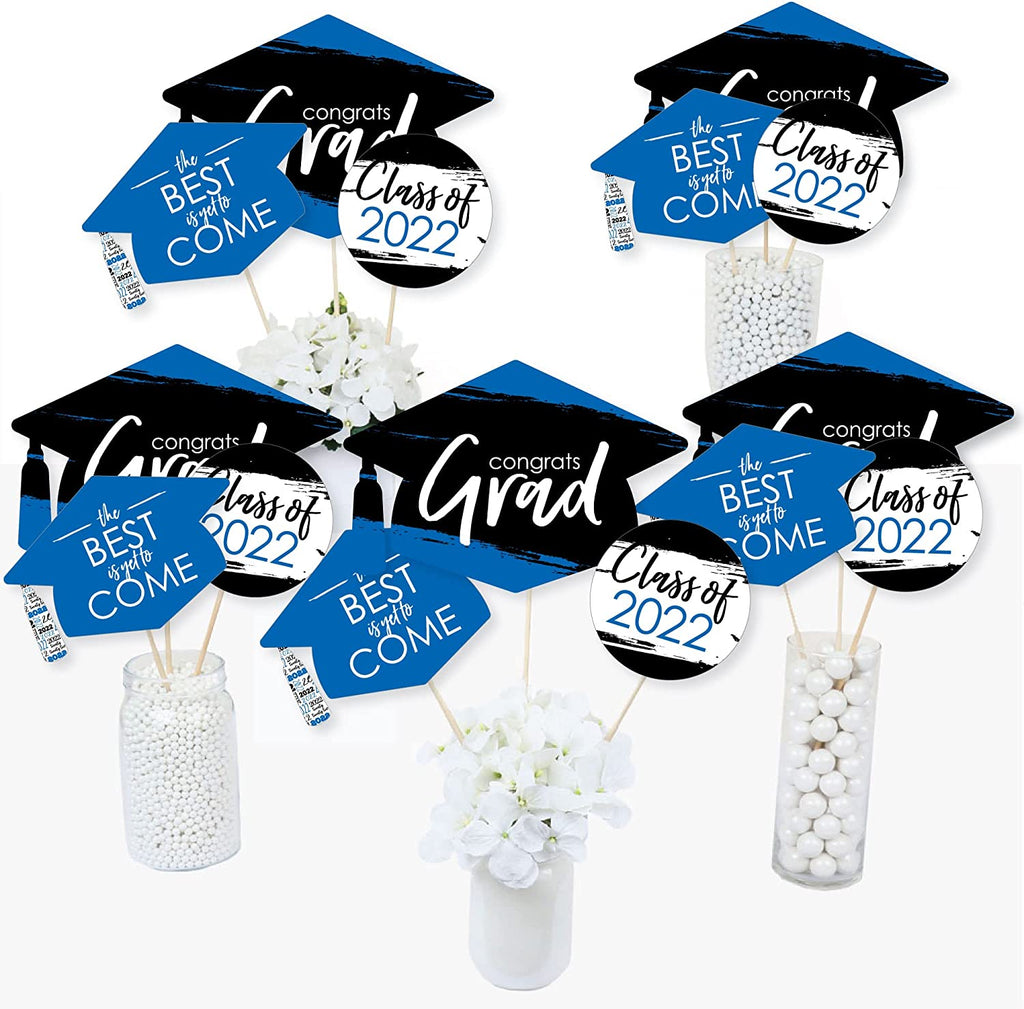 Blue Grad - Best is Yet to Come - 2022 Royal Blue Graduation Party Centerpiece Sticks - Table Toppers - Set of 15