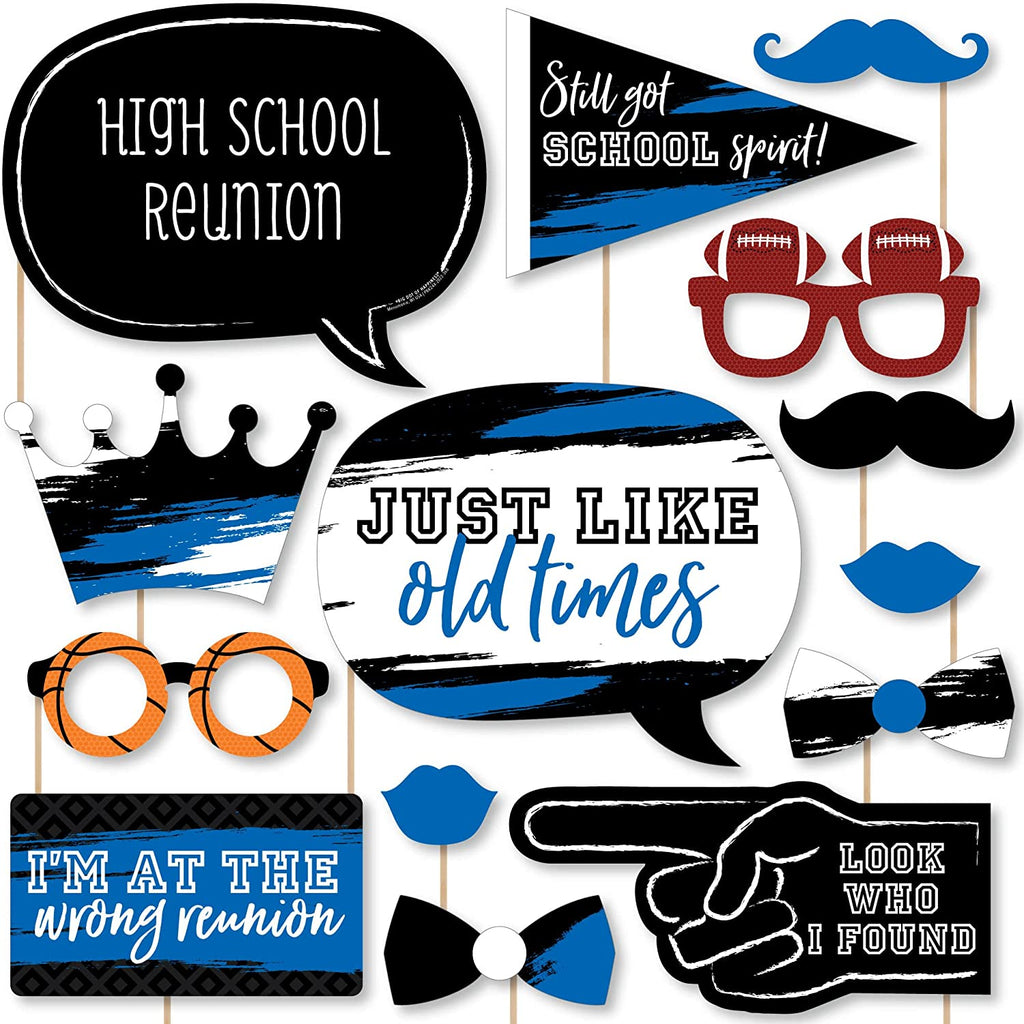Reunited Blue - Royal Blue School Class Reunion Party Photo Booth Props Kit - 20 Count