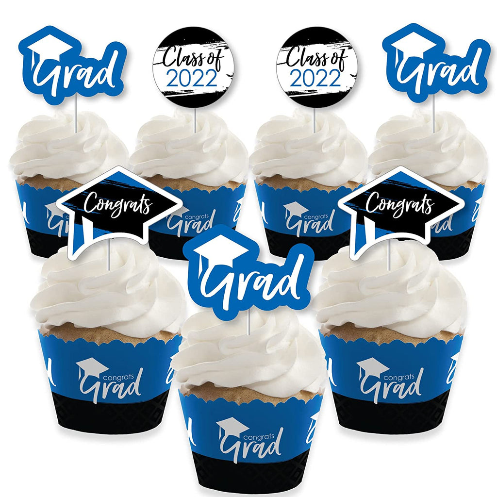 Grad - Best is Yet to Come - Cupcake Decoration - 2022 Royal Blue Graduation Party Cupcake Wrappers and Treat Picks Kit - Set of 24