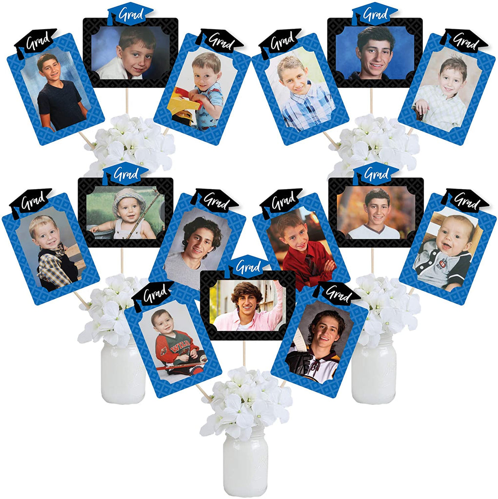 Blue Grad - Best is Yet to Come - Graduation Party Picture Centerpiece Sticks - Photo Table Toppers - 15 Pieces