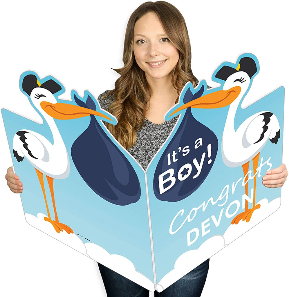 Boy Special Delivery - Custom It’s A Boy Stork Congratulations Giant Greeting Card - Personalized Big Shaped Jumborific Card - 16.5 x 22 inches