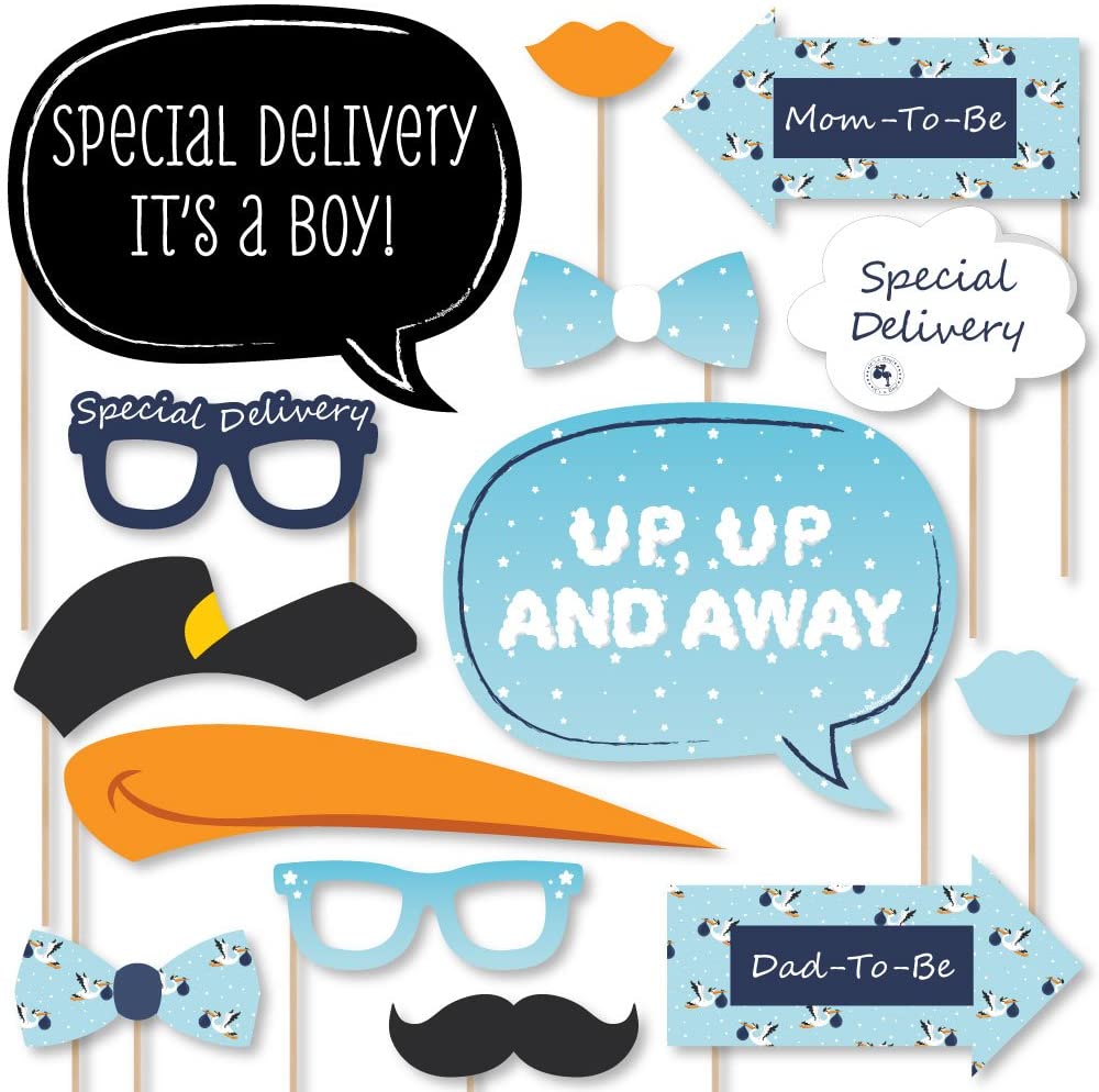 Boy Special Delivery - Blue It’s A Boy Stork Baby Shower Photo Booth Props Kit - 20 Count