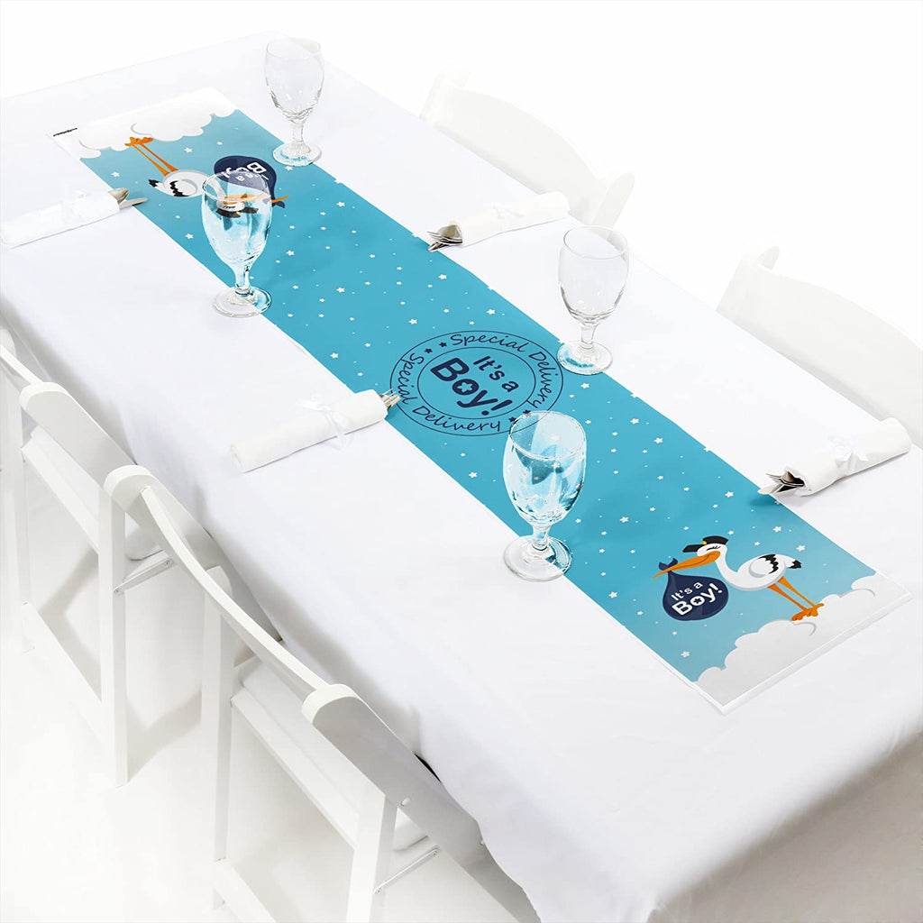 Boy Special Delivery - Petite Blue It’s A Boy Stork Baby Shower Paper Table Runner - 12 x 60 inches