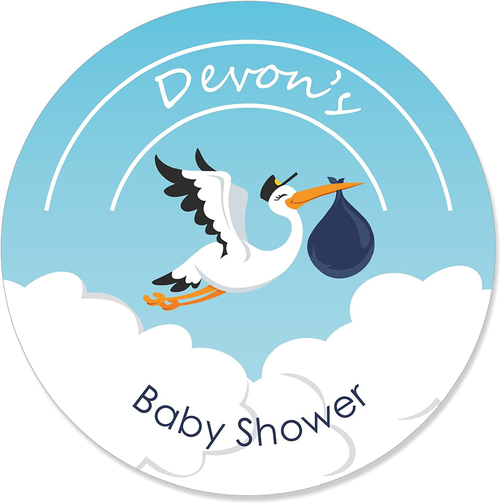 Personalized Boy Special Delivery - Custom It's A Boy Stork Baby Shower Party Favor Circle Sticker Labels - Custom Text - 24 Count