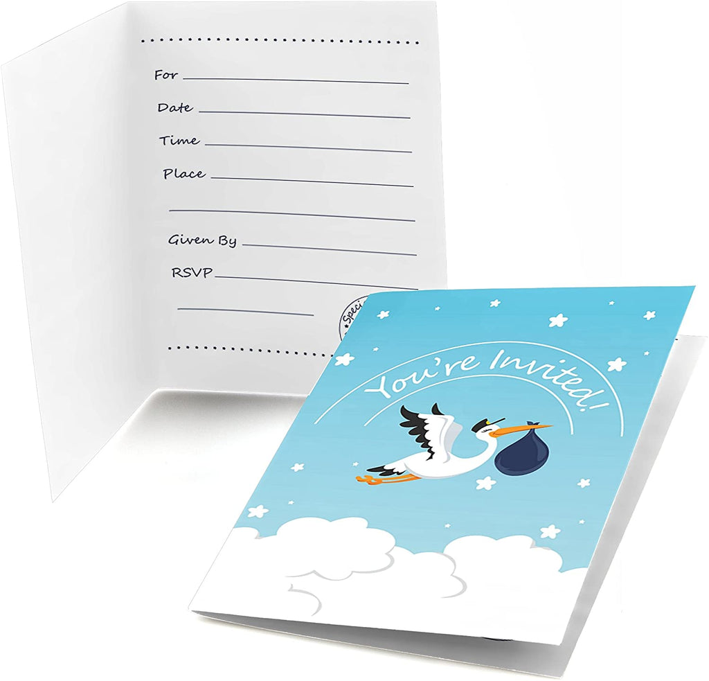 Boy Special Delivery - Shaped Fill-In Invitations - Blue It’s A Boy Stork Baby Shower Invitation Cards with Envelopes - Set of 12