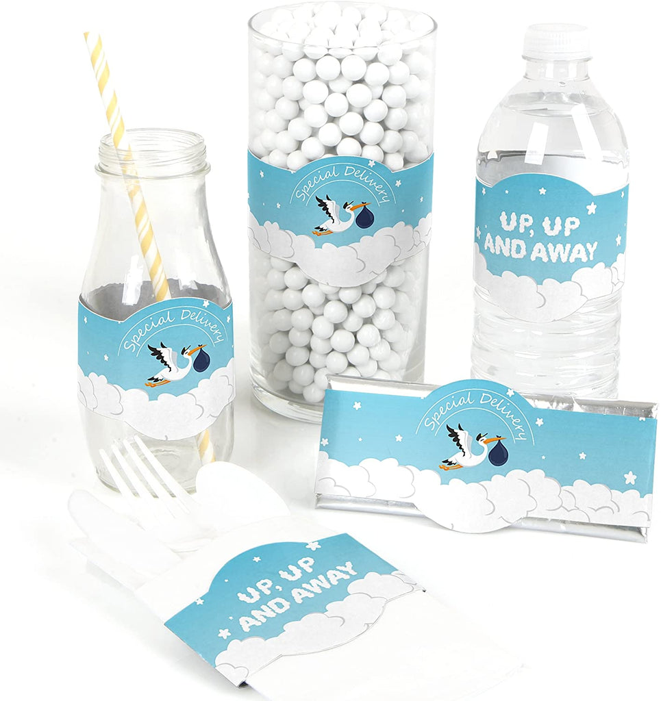 Boy Special Delivery - DIY Party Supplies - Blue It’s A Boy Stork Baby Shower DIY Wrapper Favors & Decorations - Set of 15