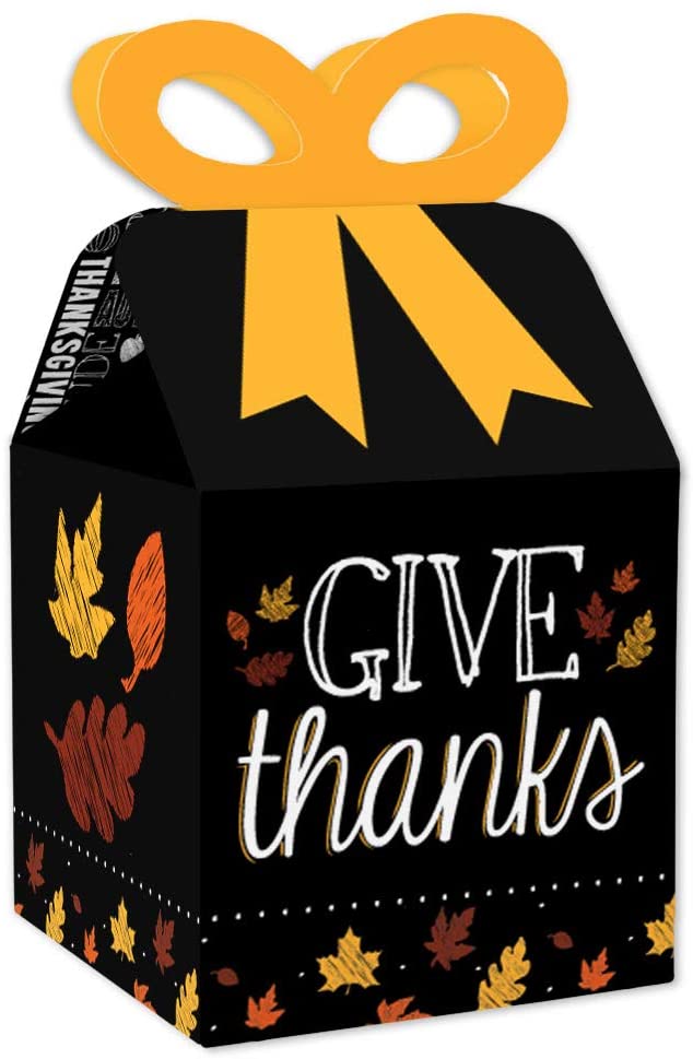 Give Thanks - Square Favor Gift Boxes - Thanksgiving Party Bow Boxes - Set of 12