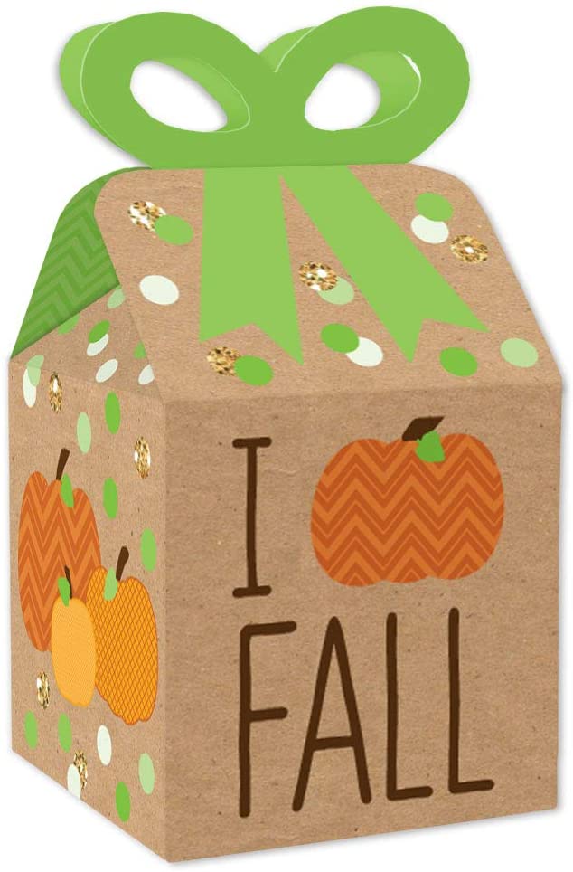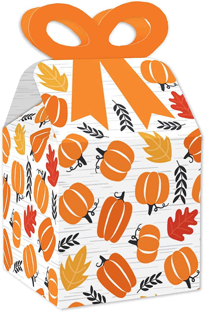 Fall Pumpkin - Square Favor Gift Boxes - Halloween or Thanksgiving Party Bow Boxes - Set of 12