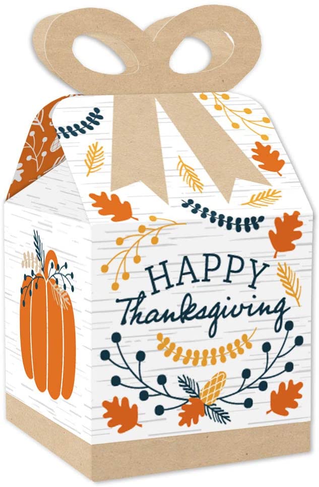 Happy Thanksgiving - Square Favor Gift Boxes - Fall Harvest Party Bow Boxes - Set of 12