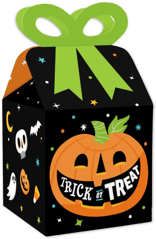 Jack-O'-Lantern Halloween - Square Favor Gift Boxes - Kids Halloween Party Bow Boxes - Set of 12