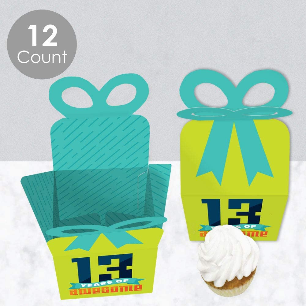 Boy 13th Birthday - Square Favor Gift Boxes - Official Teenager Birthday Party Bow Boxes - Set of 12 is backordered and will ship as soon as it is back in stock.