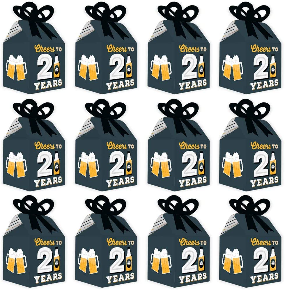 Cheers and Beers to 21 Years - Square Favor Gift Boxes - 21st Birthday Party Bow Boxes - Set of 12
