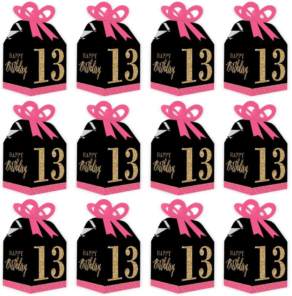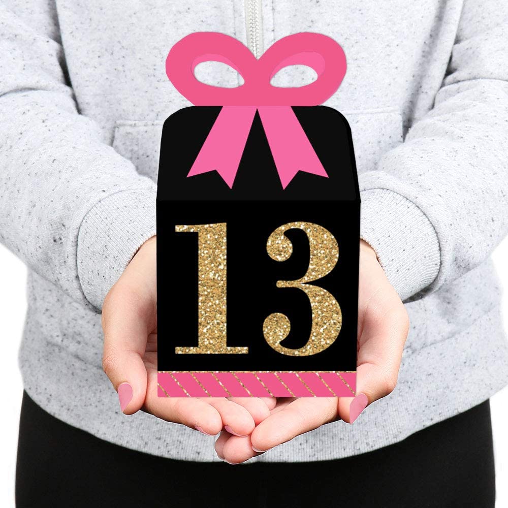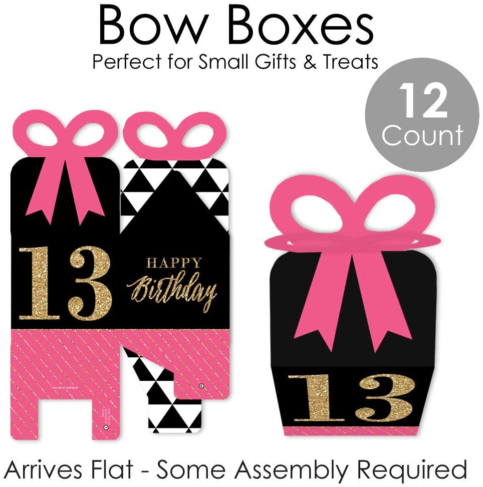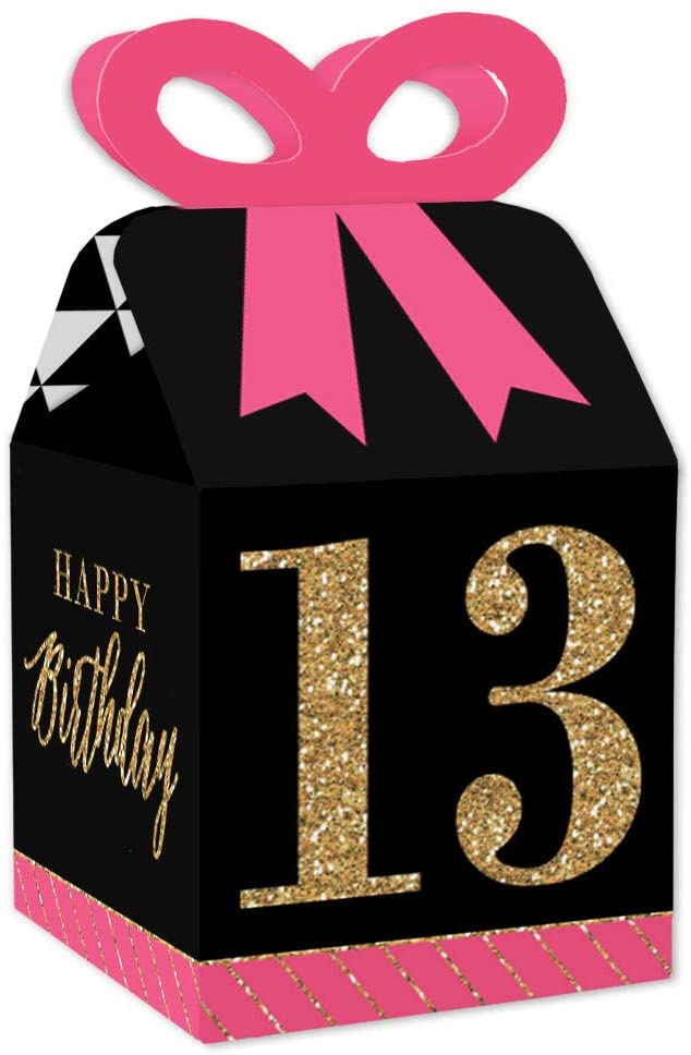 Chic 13th Birthday - Pink, Black and Gold - Square Favor Gift Boxes - Birthday Party Bow Boxes - Set of 12 is backordered and will ship as soon as it is back in stock.