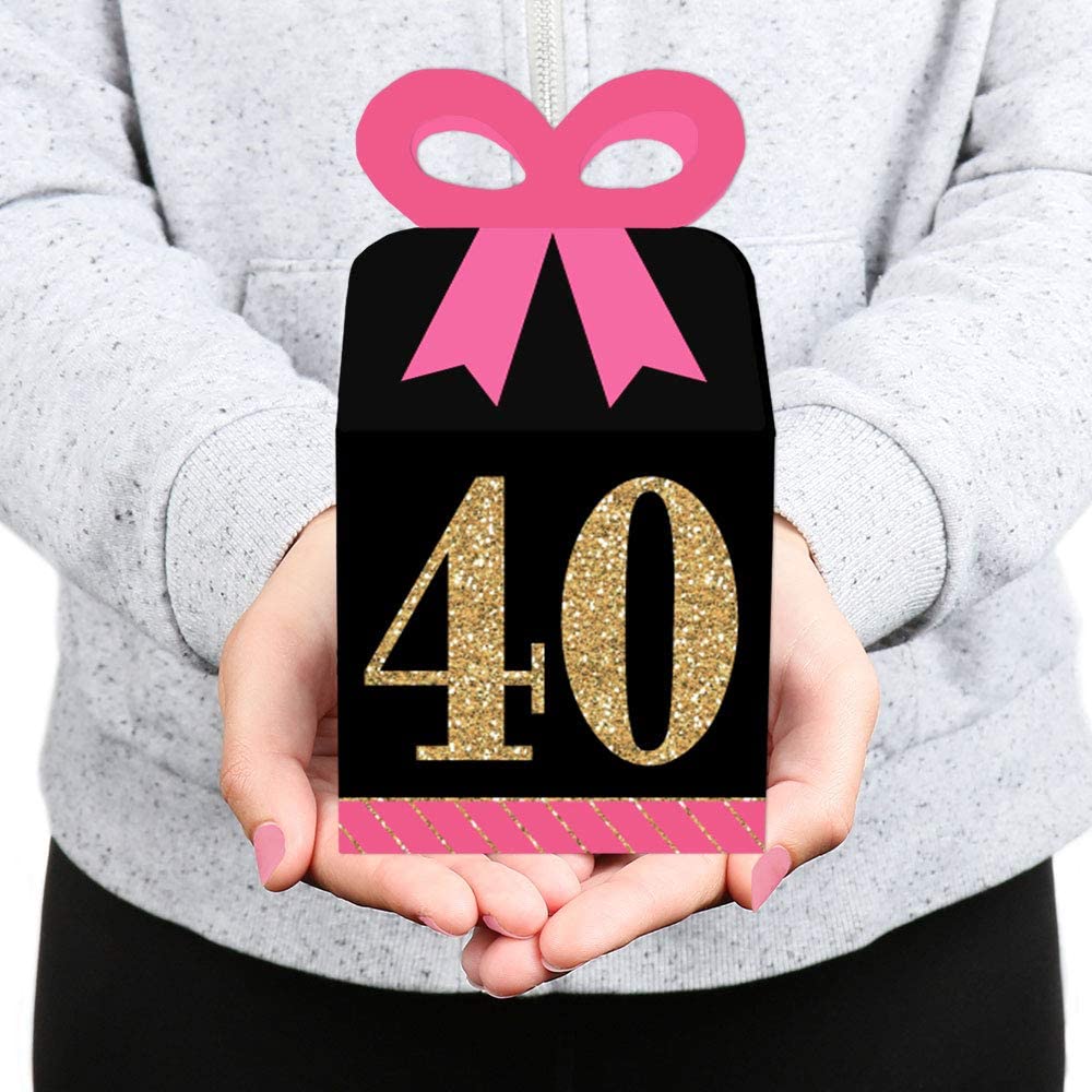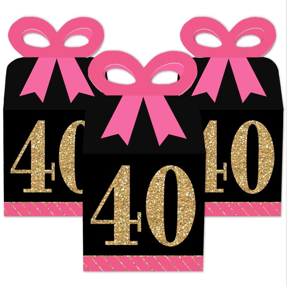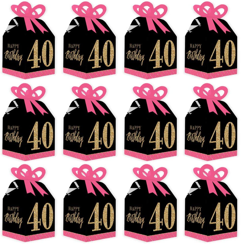 Chic 40th Birthday - Pink, Black and Gold - Square Favor Gift Boxes - Birthday Party Bow Boxes - Set of 12 is backordered and will ship as soon as it is back in stock.