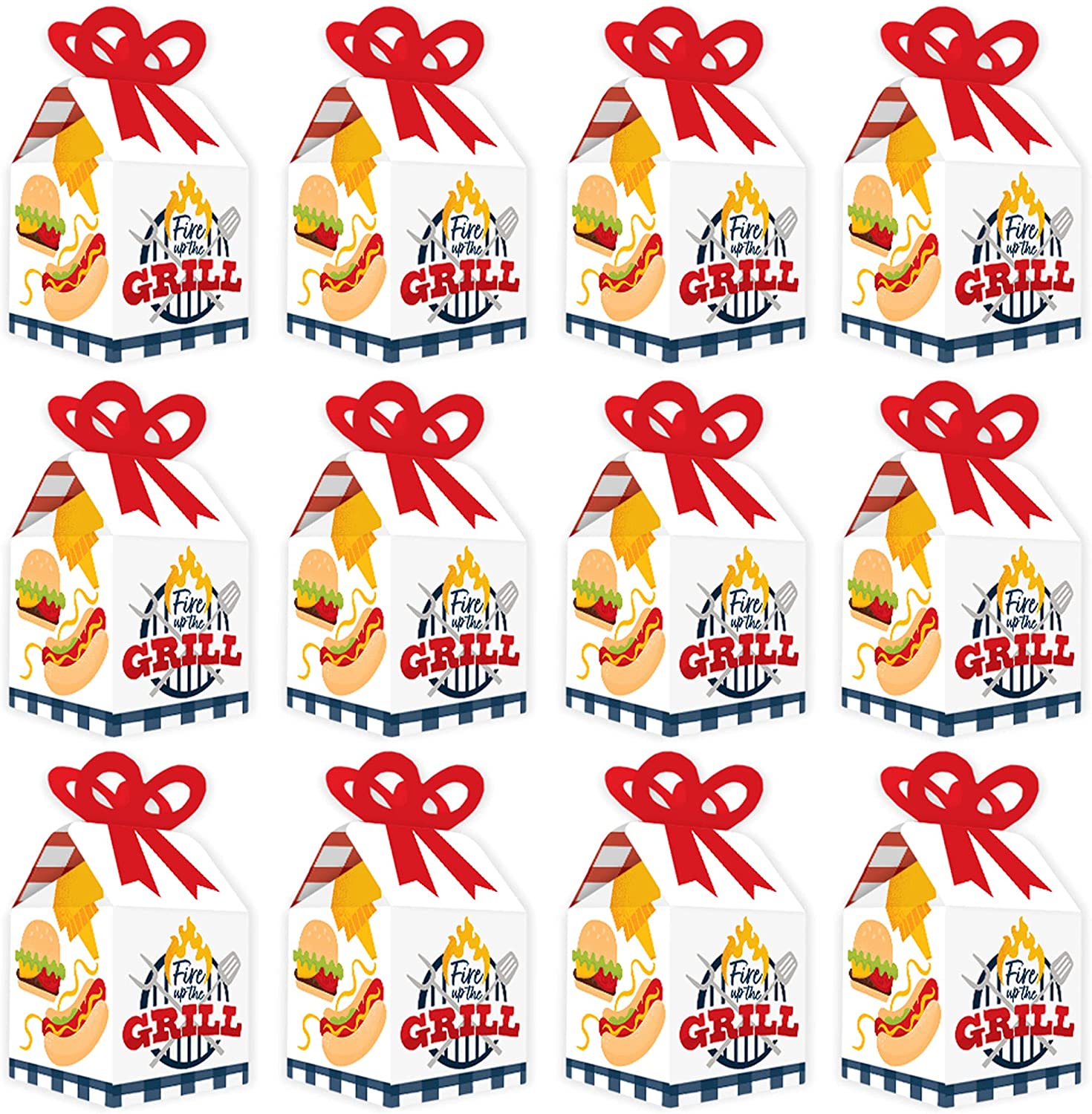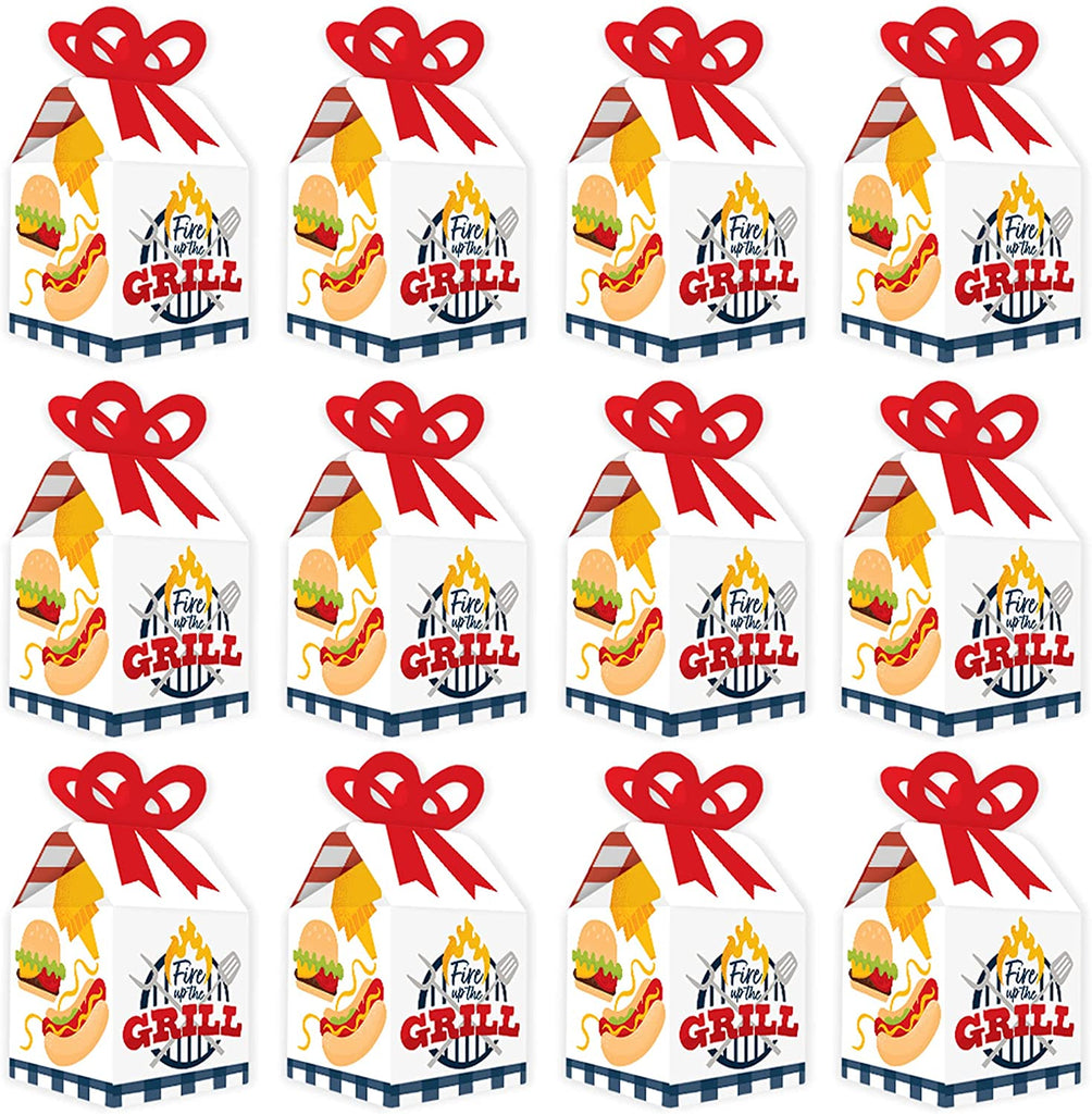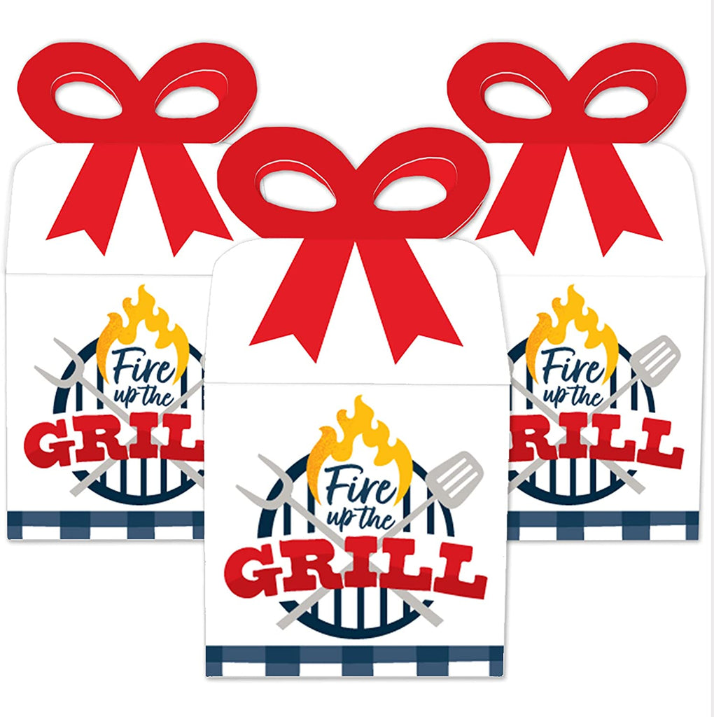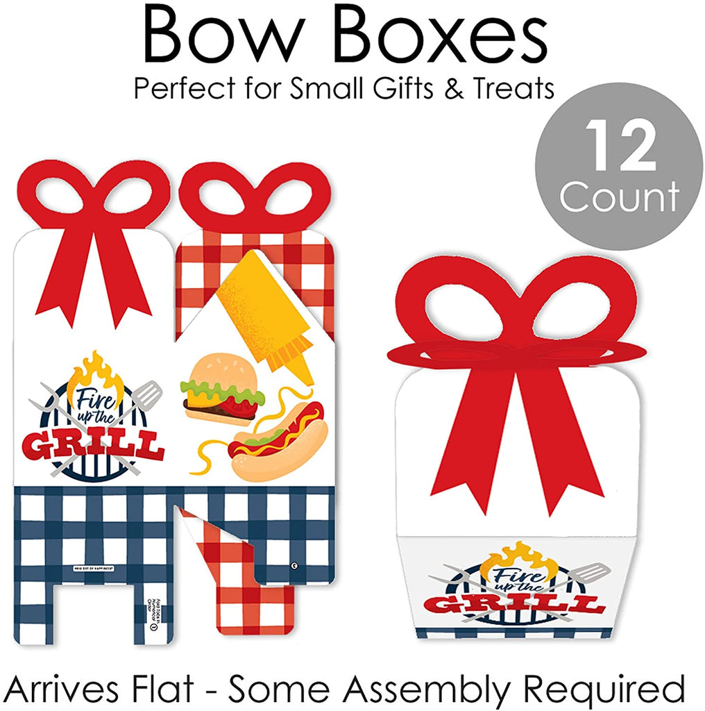 Fire Up the Grill - Square Favor Gift Boxes - Summer BBQ Picnic Party Bow Boxes - Set of 12 is backordered and will ship as soon as it is back in stock.