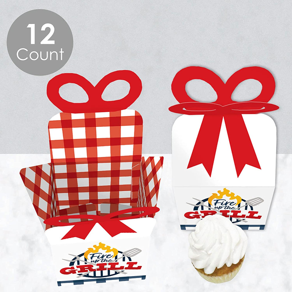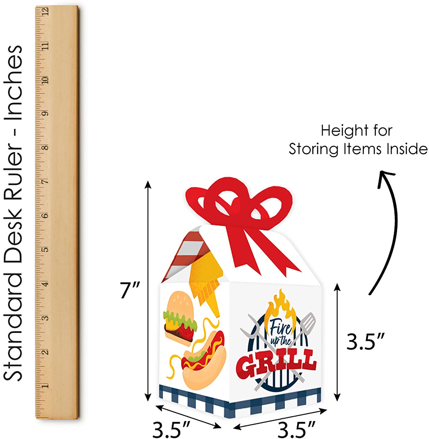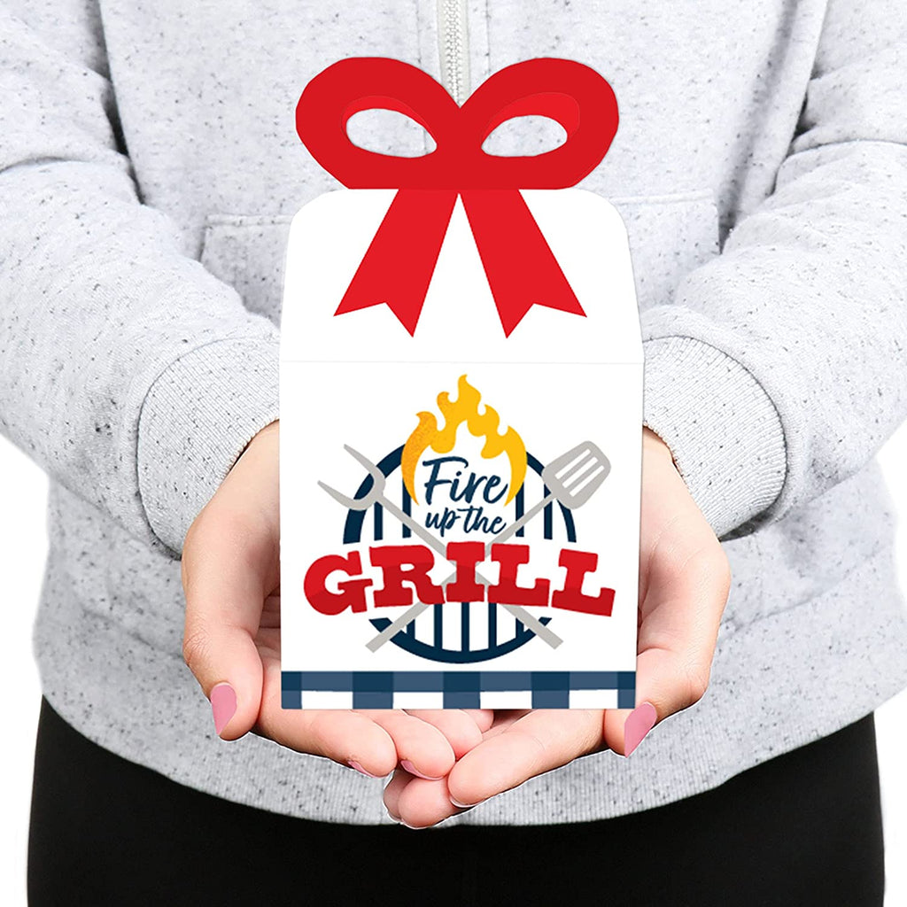 Fire Up the Grill - Square Favor Gift Boxes - Summer BBQ Picnic Party Bow Boxes - Set of 12 is backordered and will ship as soon as it is back in stock.