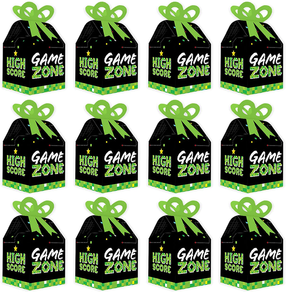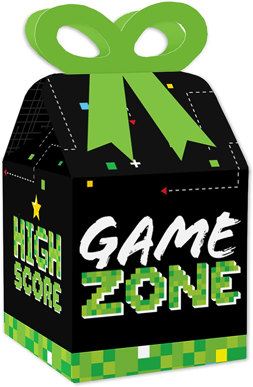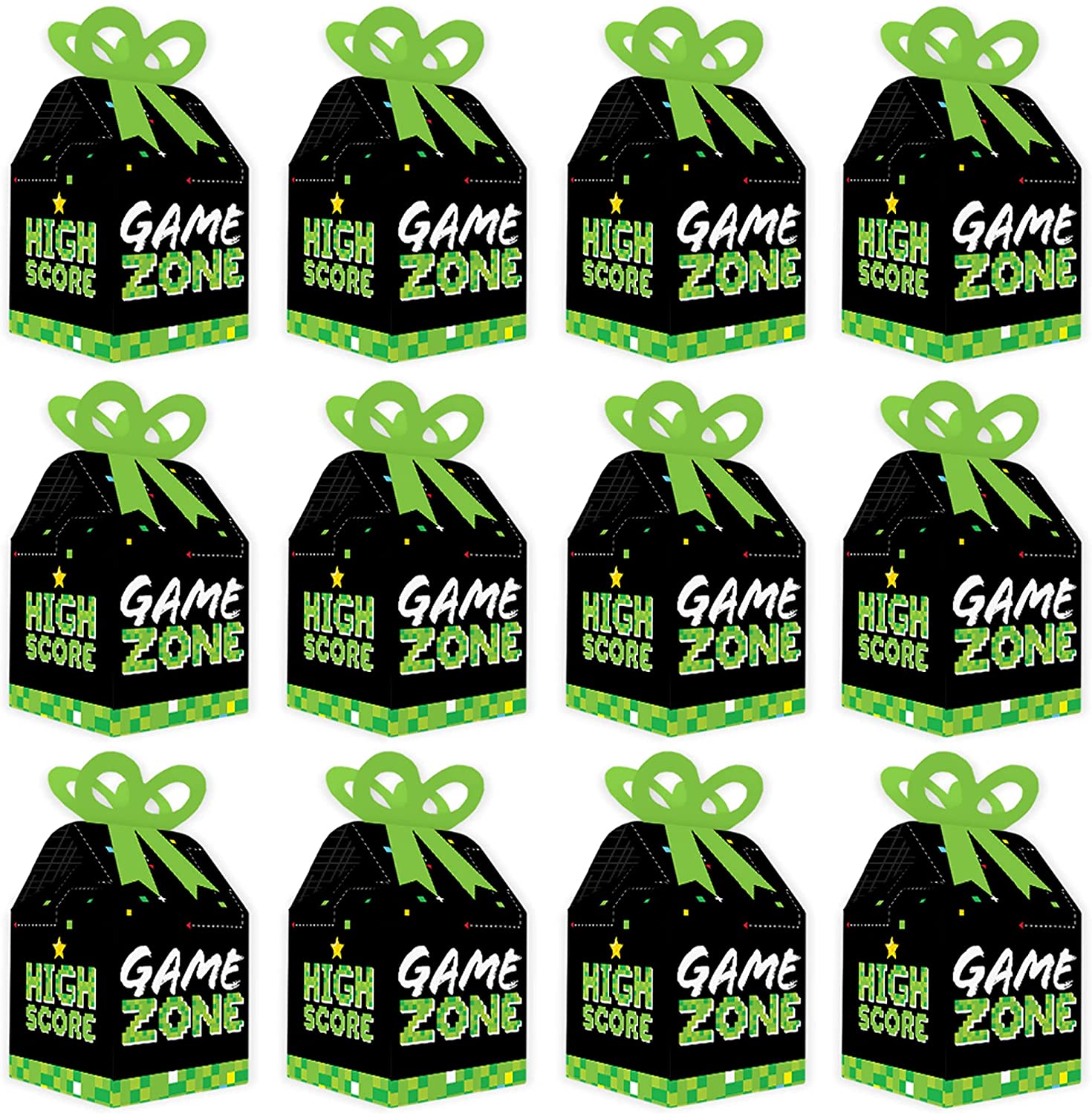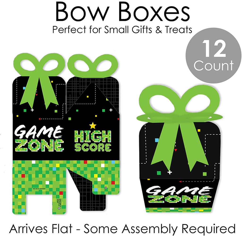 Game Zone - Square Favor Gift Boxes - Pixel Video Game Party or Birthday Party Bow Boxes - Set of 12 is backordered and will ship as soon as it is back in stock.