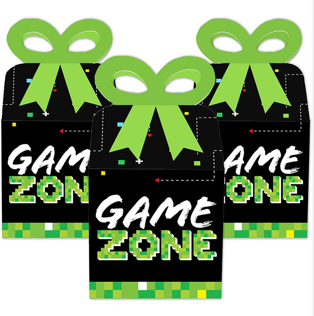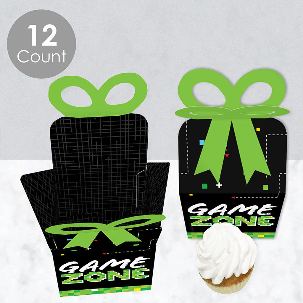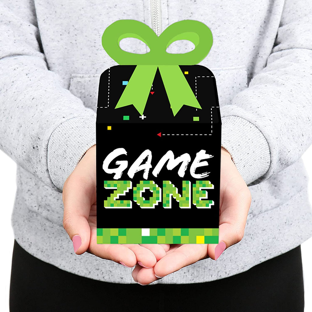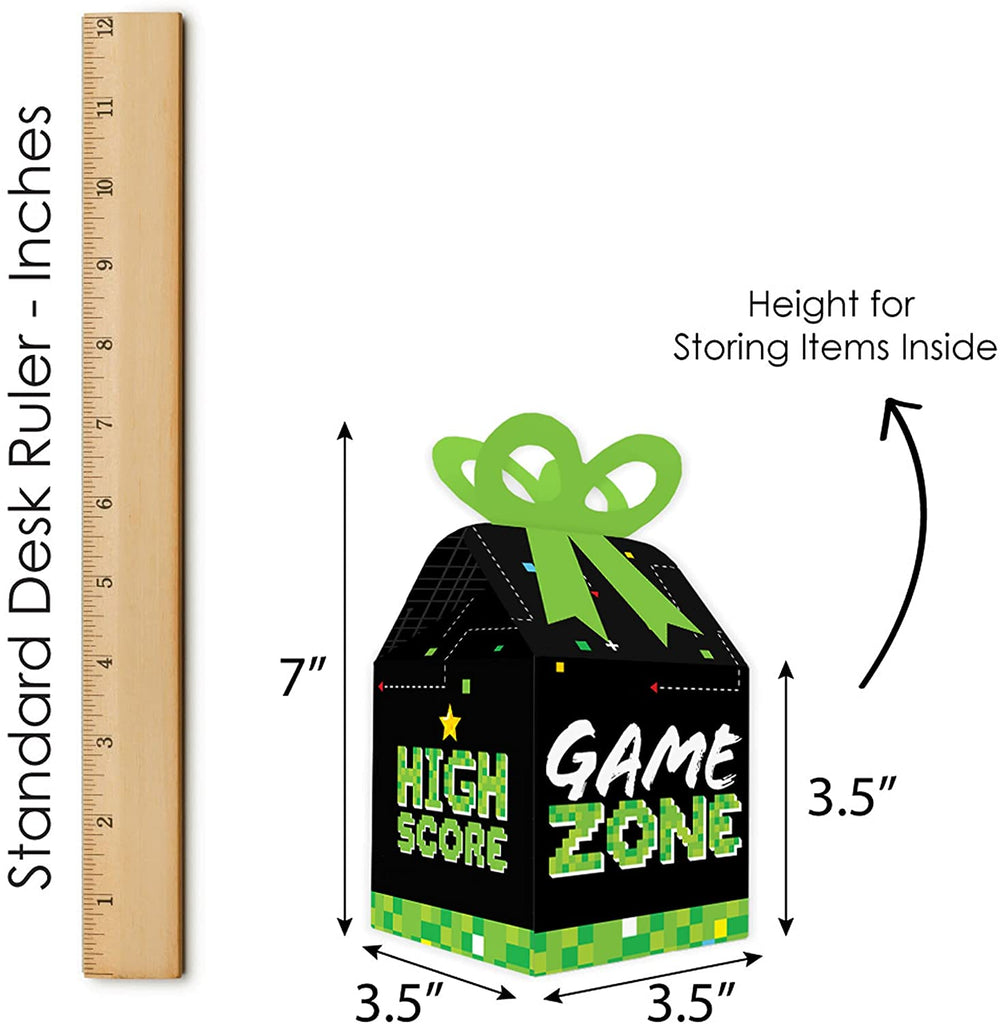 Game Zone - Square Favor Gift Boxes - Pixel Video Game Party or Birthday Party Bow Boxes - Set of 12 is backordered and will ship as soon as it is back in stock.