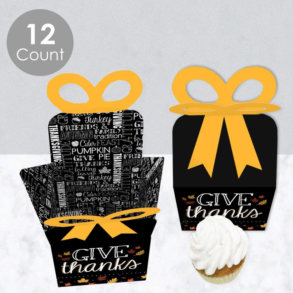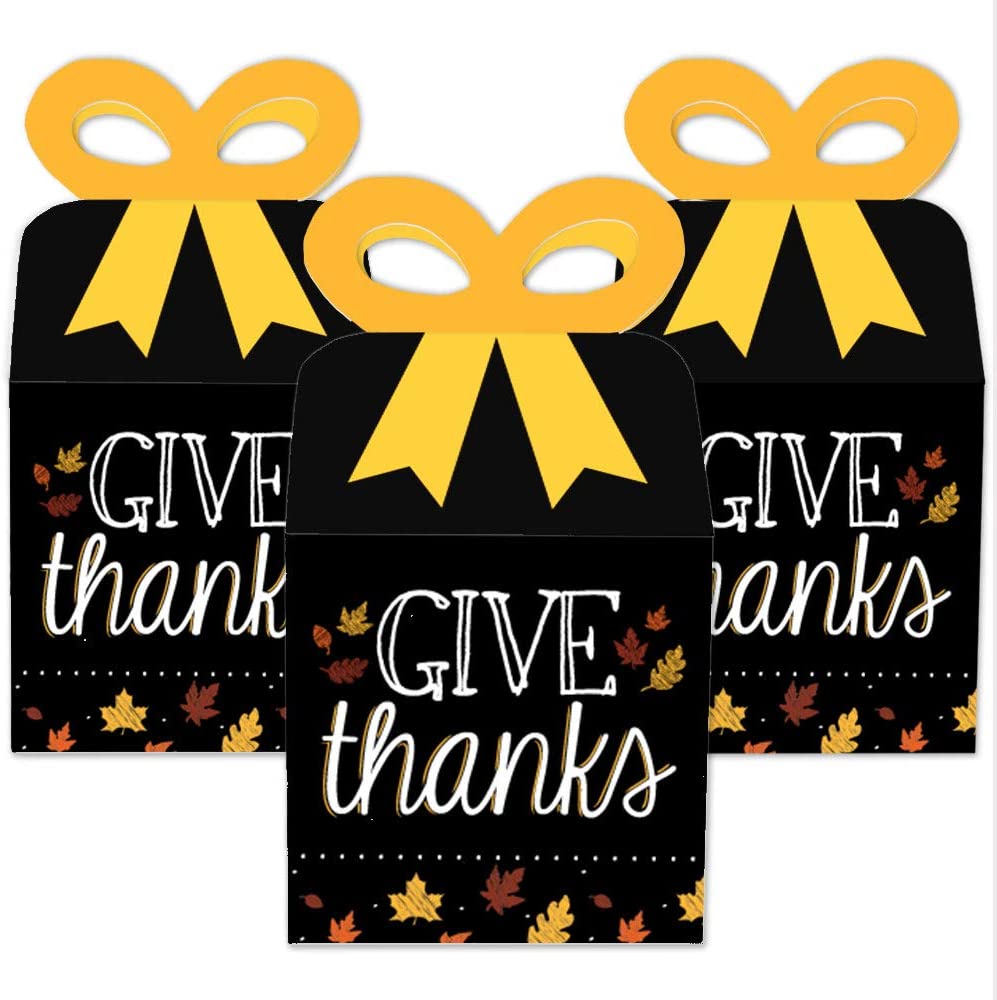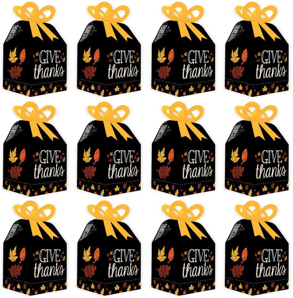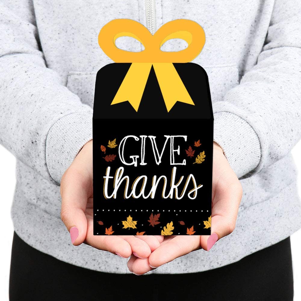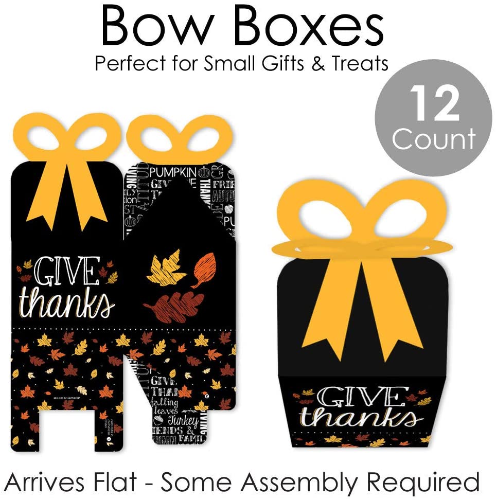 Give Thanks - Square Favor Gift Boxes - Thanksgiving Party Bow Boxes - Set of 12