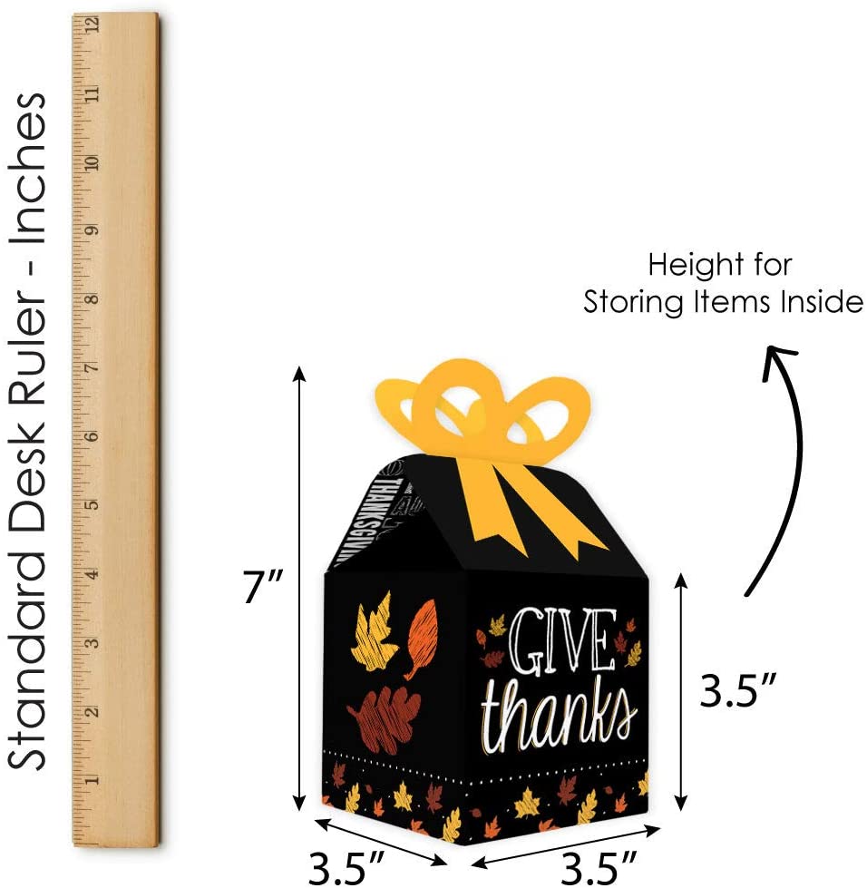 • Bow Boxes INCLUDE: 12 Give Thanks-themed square favor gift boxes. Each box SIZE measures 3.5 inches length x 3.5 inches width x 7 inches height. Bow boxes are ideal for small gifts and treats that are under 3.5 inches tall (height for storing items in closed box). When assembled and closed, each box creates a 3D paper bow-shaped top with a square bottom.