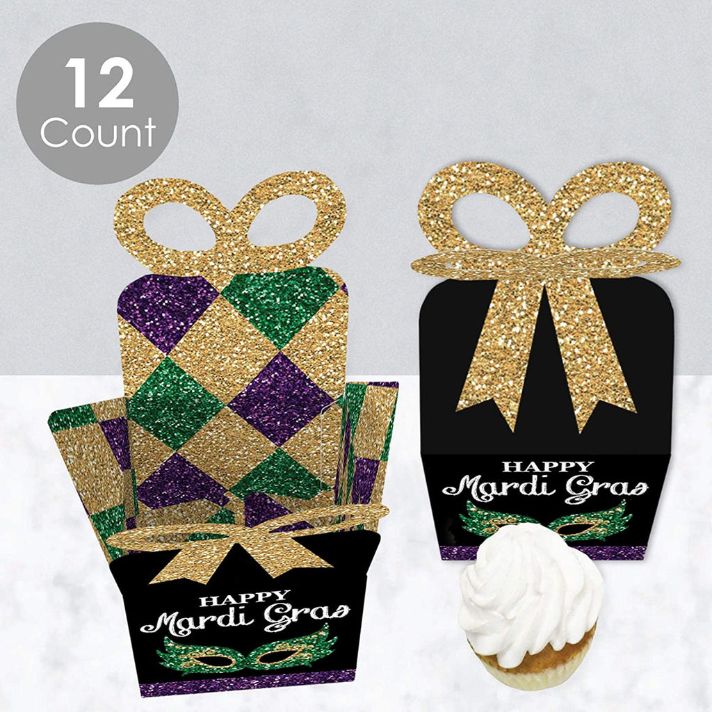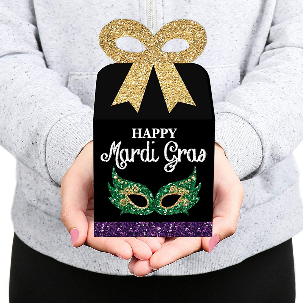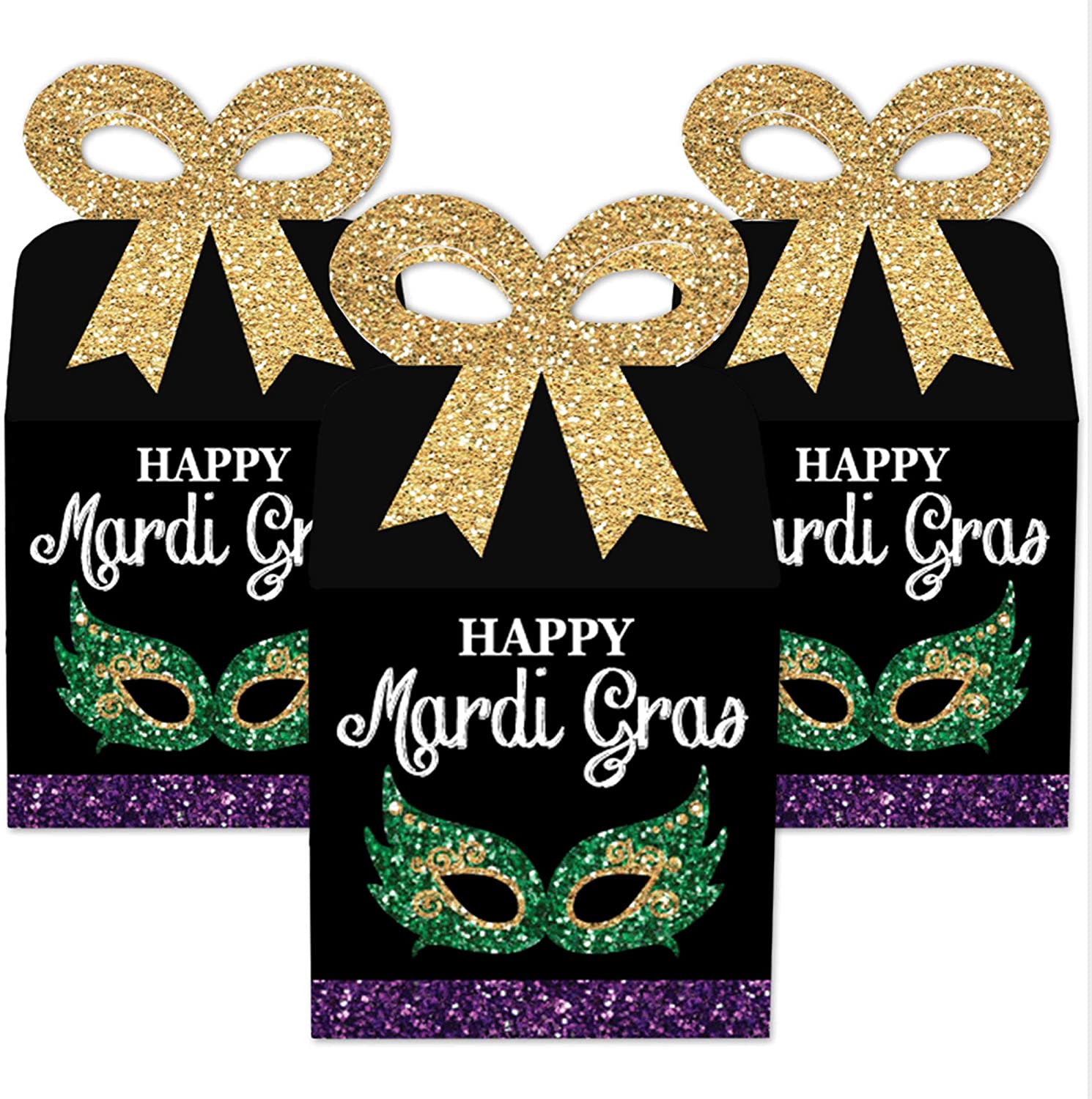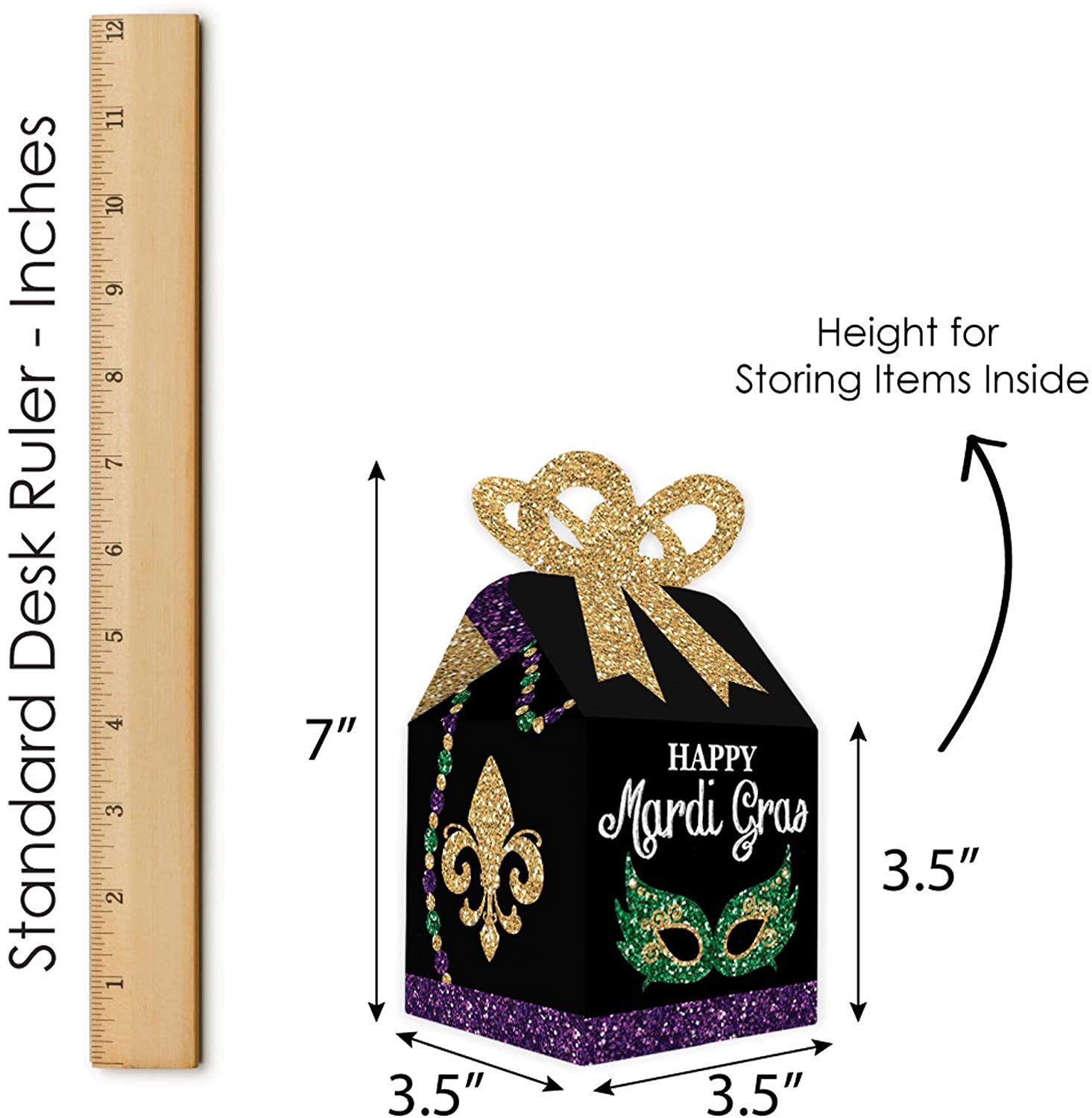 Mardi Gras - Square Favor Gift Boxes - Masquerade Party Bow Boxes - Set of 12 is backordered and will ship as soon as it is back in stock.