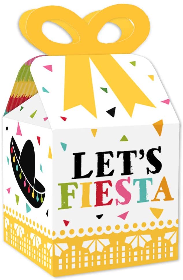 Let’s Fiesta - Square Favor Gift Boxes - Mexican Fiesta Bow Boxes - Set of 12