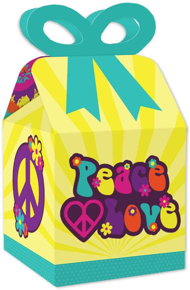 60’s Hippie - Square Favor Gift Boxes - 1960s Groovy Party Bow Boxes - Set of 12