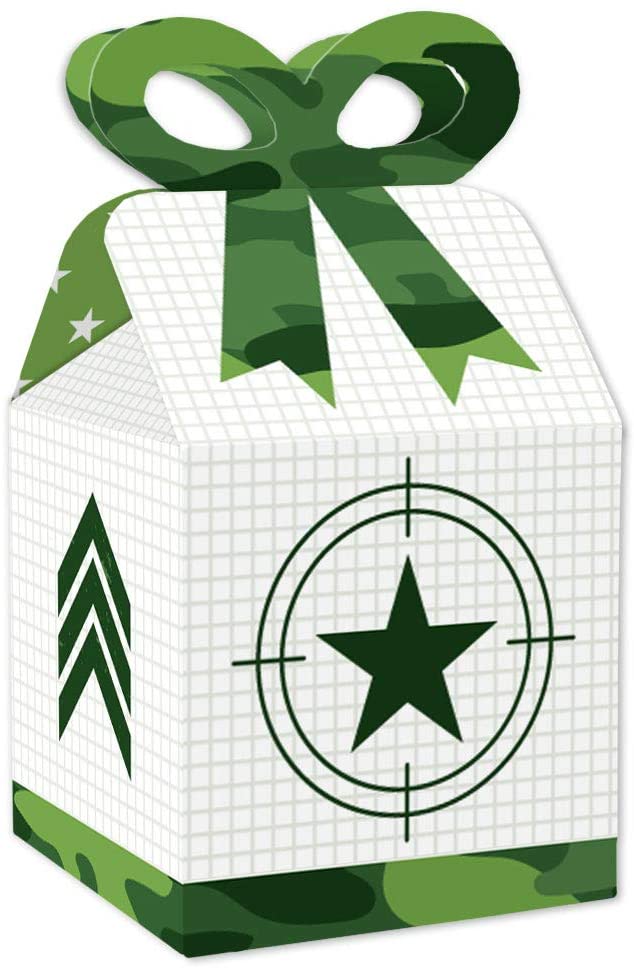Camo Hero - Square Favor Gift Boxes - Army Military Camouflage Party Bow Boxes - Set of 12