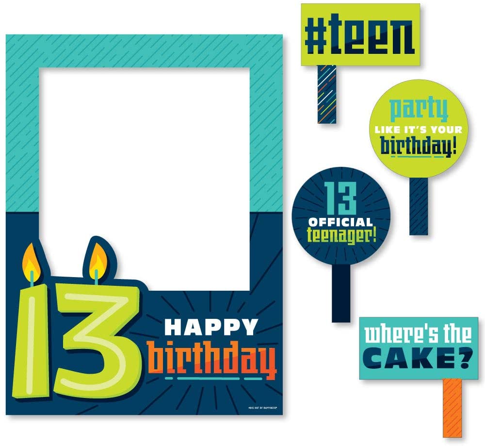 Boy 13th Birthday - Official Teenager Birthday Party Selfie Photo Booth Picture Frame and Props