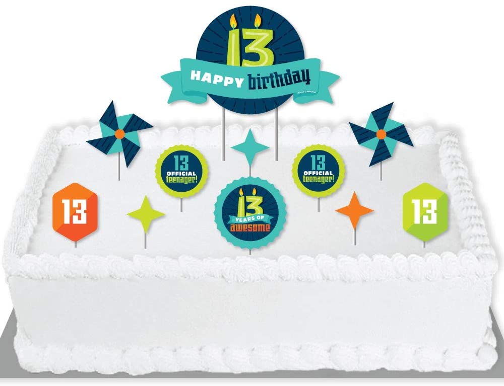 Boy 13th Birthday - Official Teenager Birthday Party Cake Decorating Kit - Happy Birthday Cake Topper Set - 11 Pieces