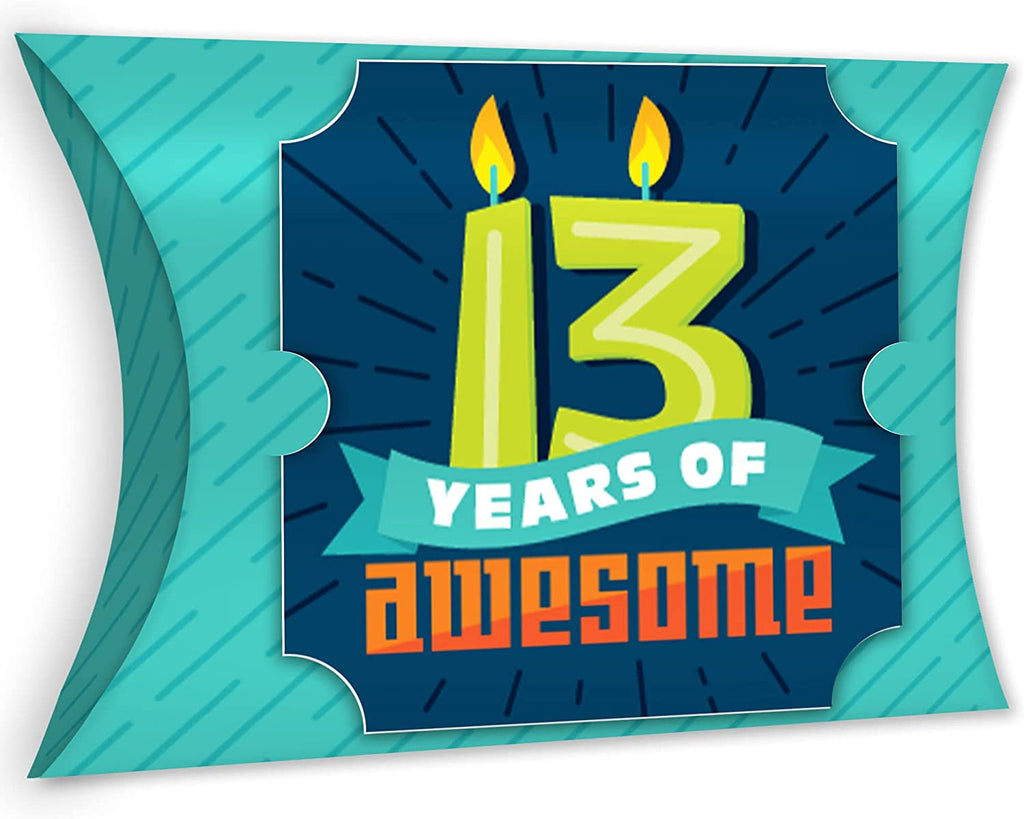 Boy 13th Birthday - Favor Gift Boxes - Official Teenager Birthday Party Large Pillow Boxes - Set of 12
