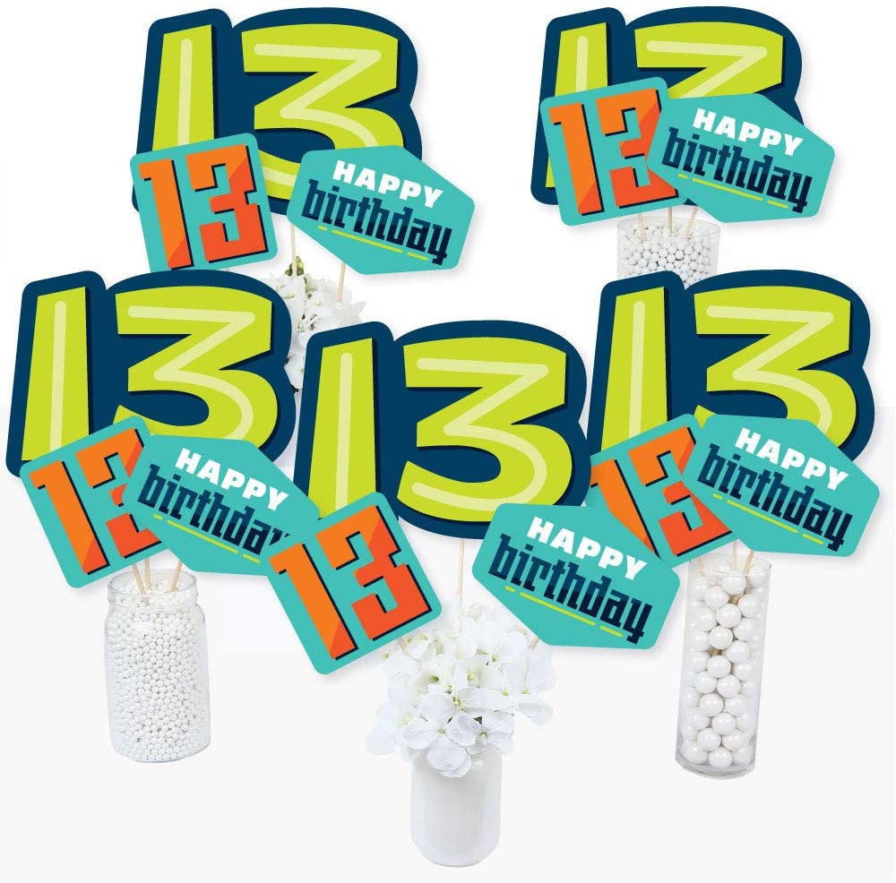 Boy 13th Birthday - Official Teenager Birthday Party Centerpiece Sticks - Table Toppers - Set of 15
