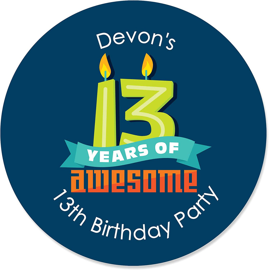Personalized Boy 13th Birthday - Custom Official Teenager Birthday Party Favor Circle Sticker Labels - Custom Text - 24 Count