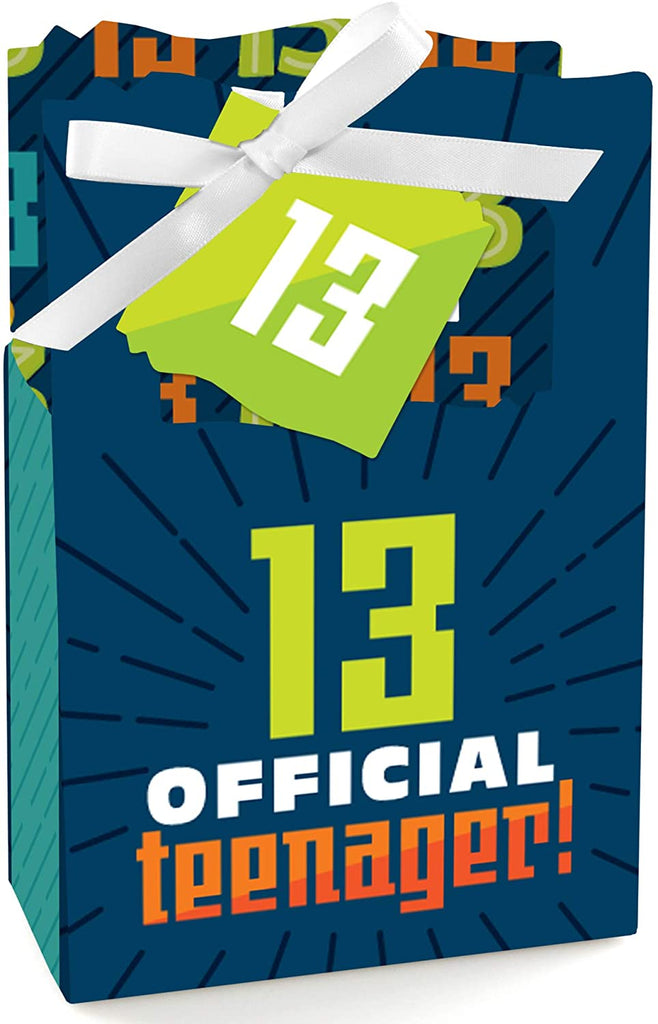 Boy 13th Birthday - Treat Box Party Favors - Official Teenager Birthday Party Goodie Gable Boxes - Set of 12