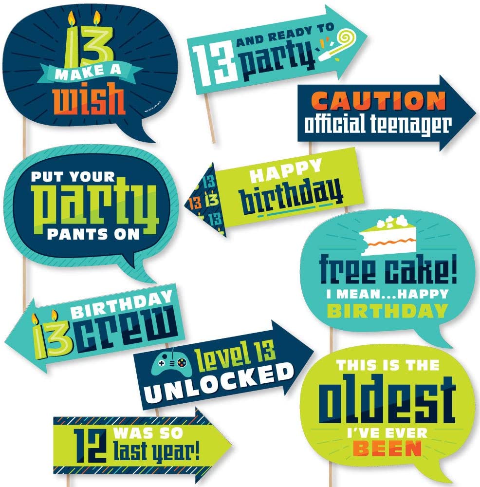 Funny Boy 13th Birthday - Official Teenager Birthday Party Photo Booth Props Kit - 10 Piece