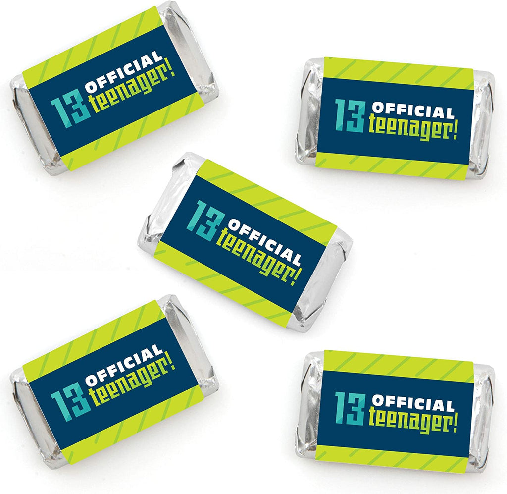 Boy 13th Birthday - Mini Candy Bar Wrapper Stickers - Official Teenager Birthday Party Small Favors - 40 Count